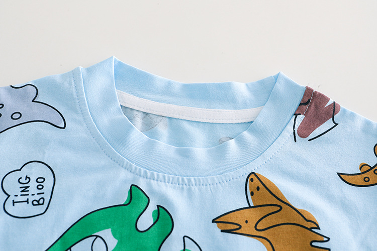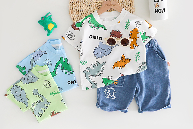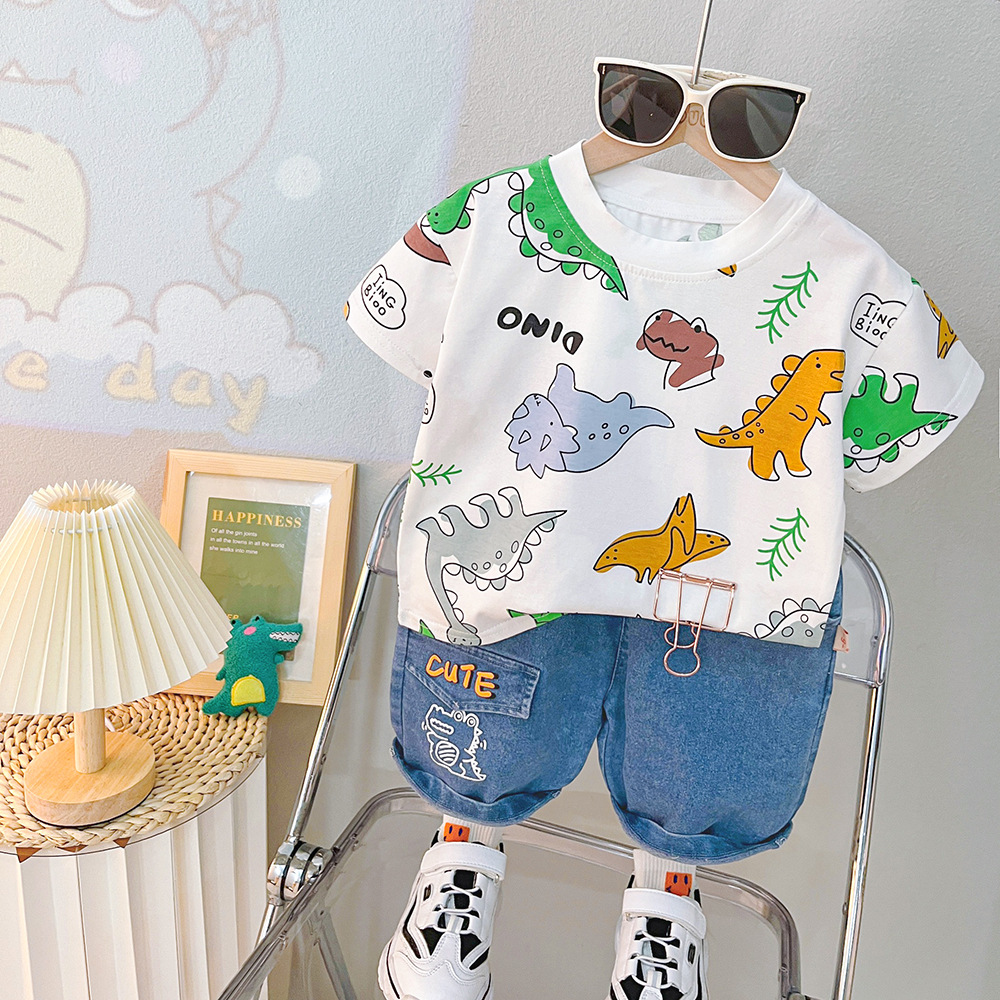 소년 반팔 세트 여름 2024 새로운 서양 스타일 아기 여름 만화 공룡 투피스 세트 아기 아이들스토어 가기