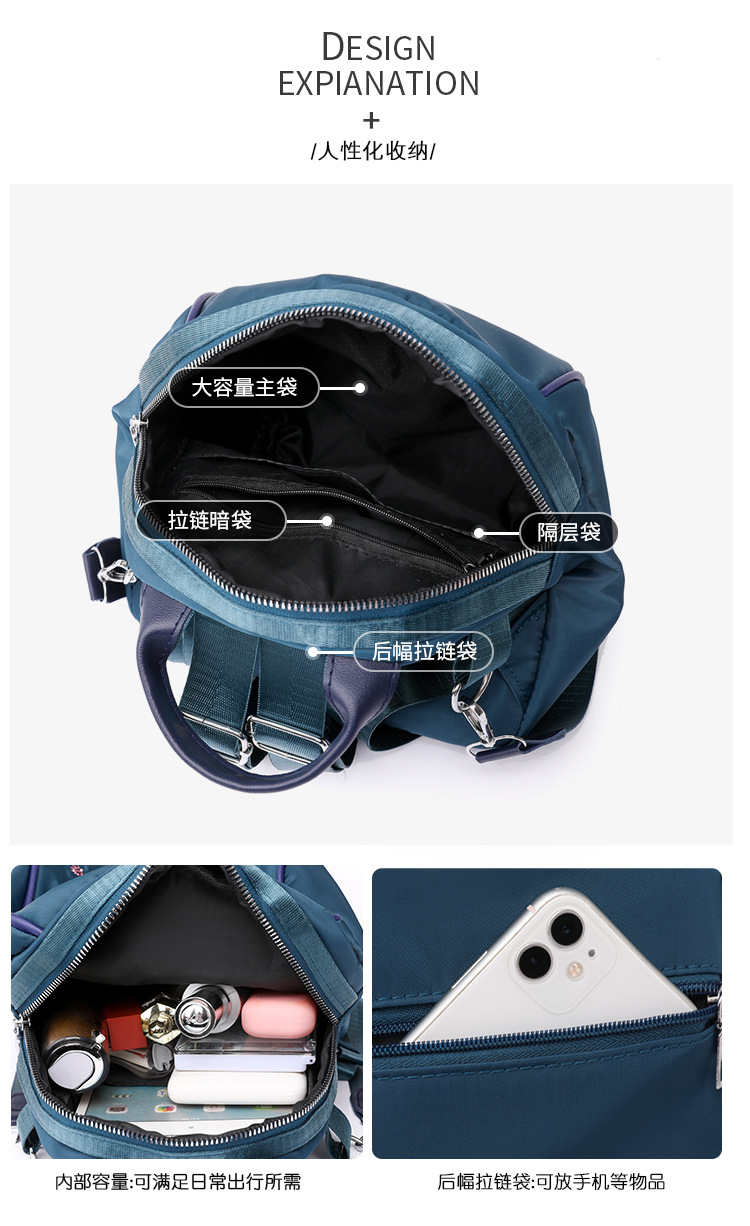 새로운 2024 여성 한국식 패션 나일론 천 독특한 자수 미니 가방 여행 작은 배낭 배낭
