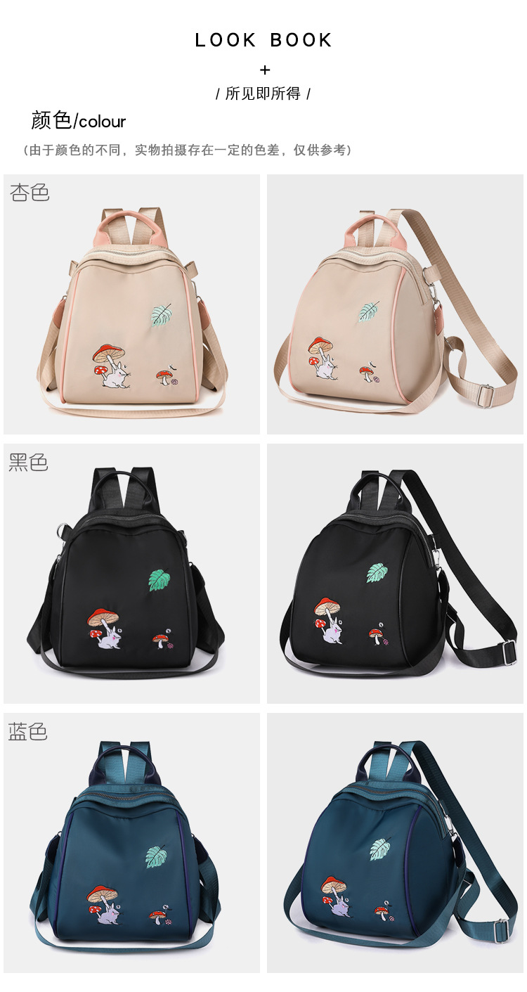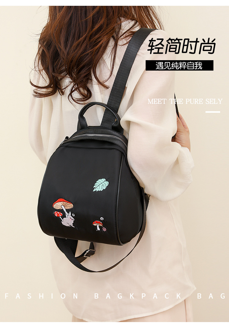 새로운 2024 여성 한국식 패션 나일론 천 독특한 자수 미니 가방 여행 작은 배낭 배낭스토어 가기