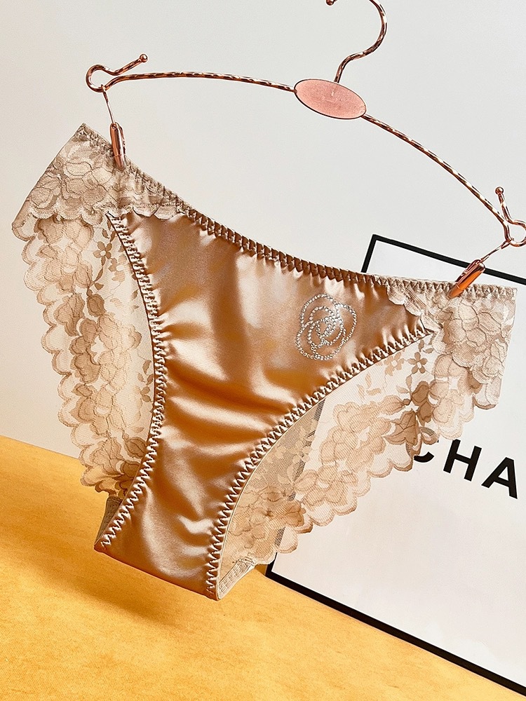 프랑스 스타일 섹시 레이스 속옷 여성의 실키 아이스 실크 새틴 패셔너블 다이아몬드는 편안하고 통기성