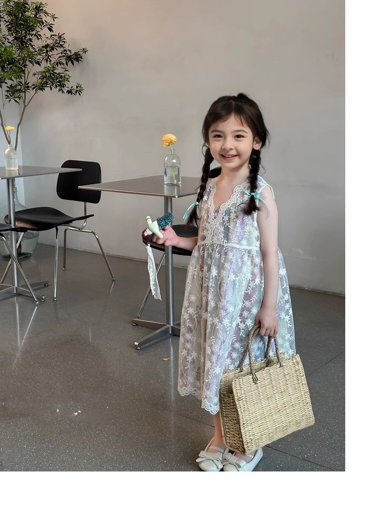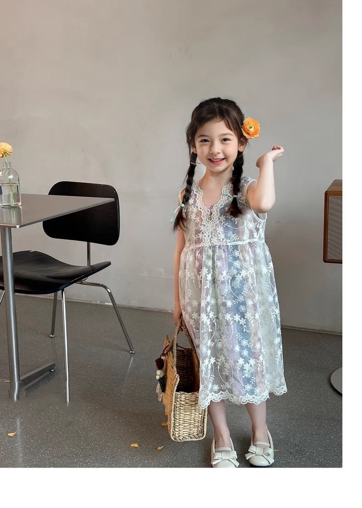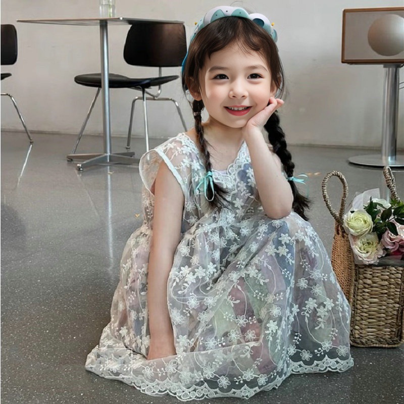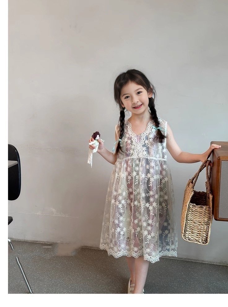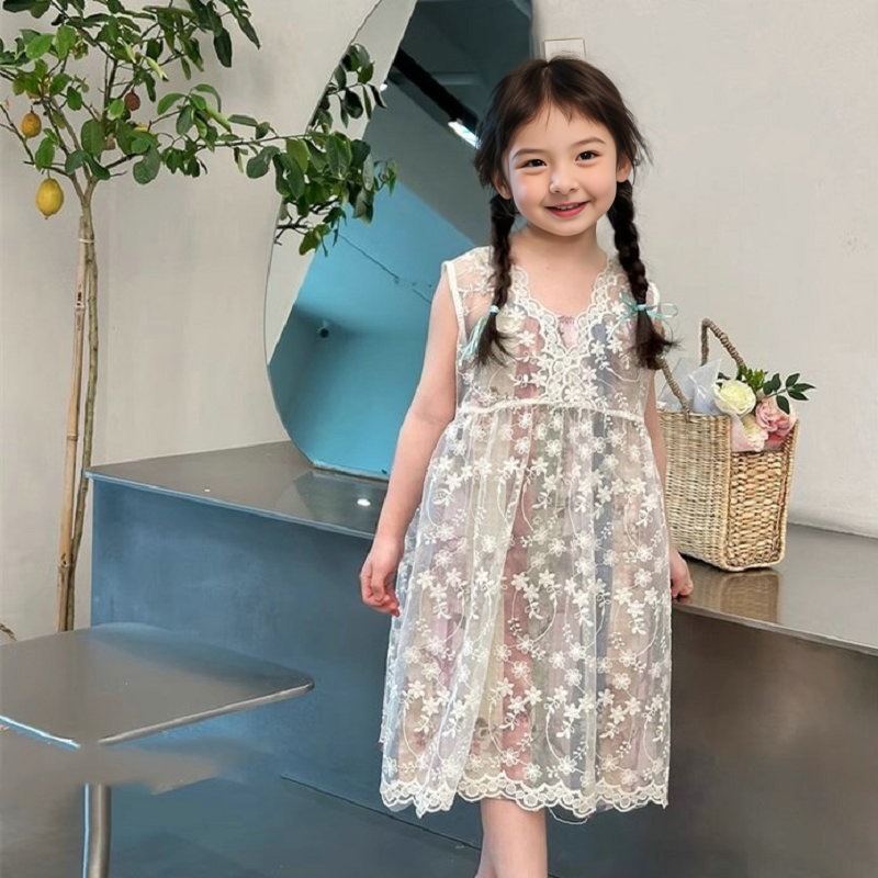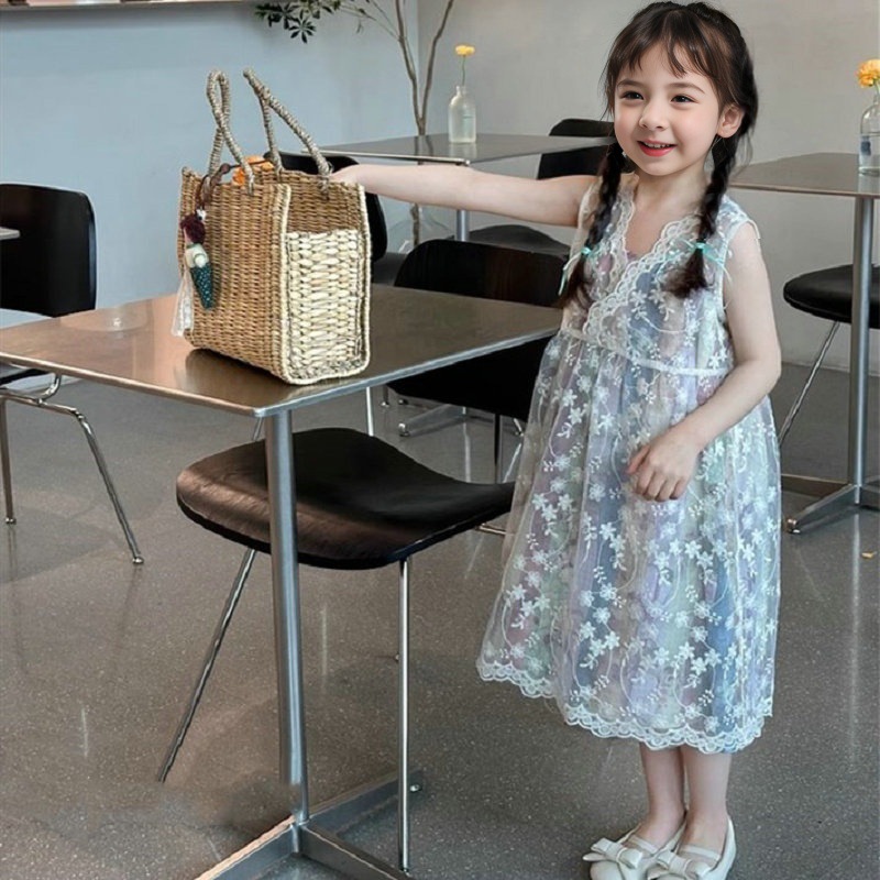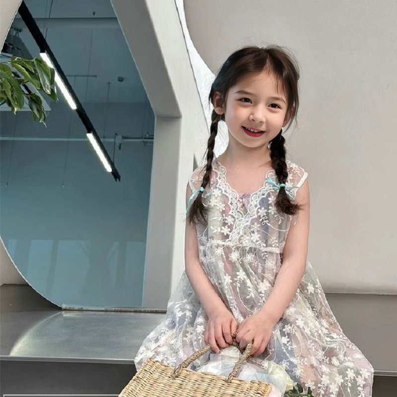 한국 아동복 소녀 여름 새로운 서양식 복고풍 유화 스타일 스태킹 조끼 블라우스 슬립 스커트 원피스 3-10 세스토어 가기