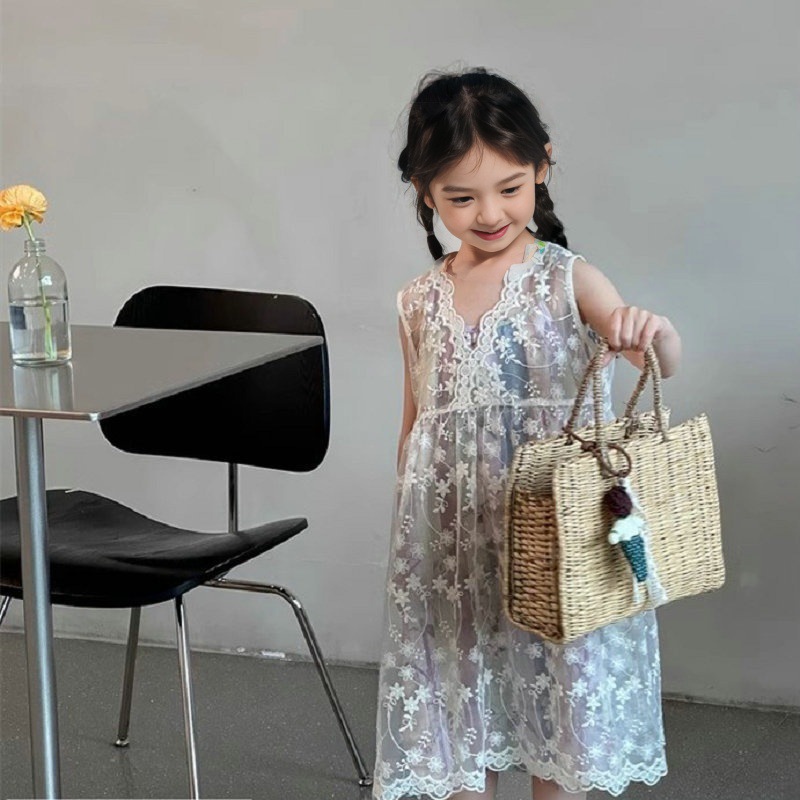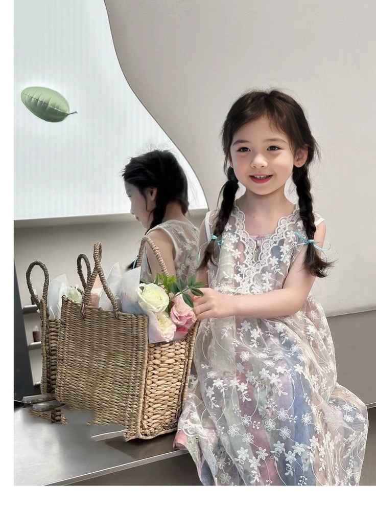한국 아동복 소녀 여름 새로운 서양식 복고풍 유화 스타일 스태킹 조끼 블라우스 슬립 스커트 원피스 3-10 세