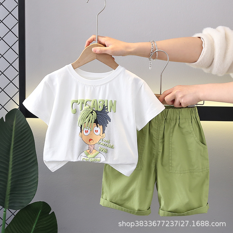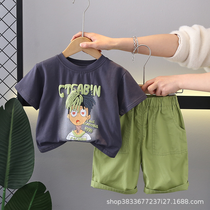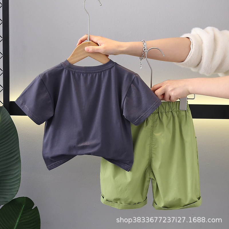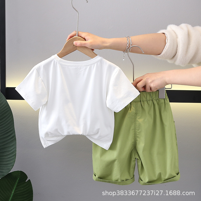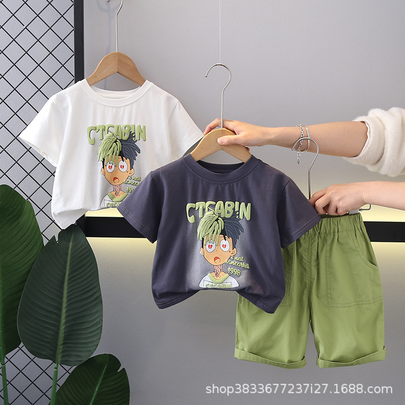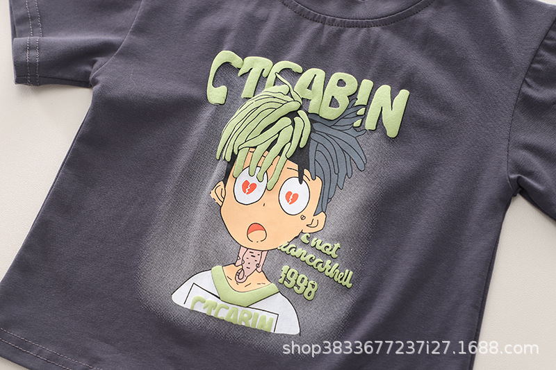 어린이 의류 소년 여름 세트 새 아기 1-5 힙합 소년 둥근 목 티셔츠 어린이 여름 짧은 소매 조수 도매스토어 가기