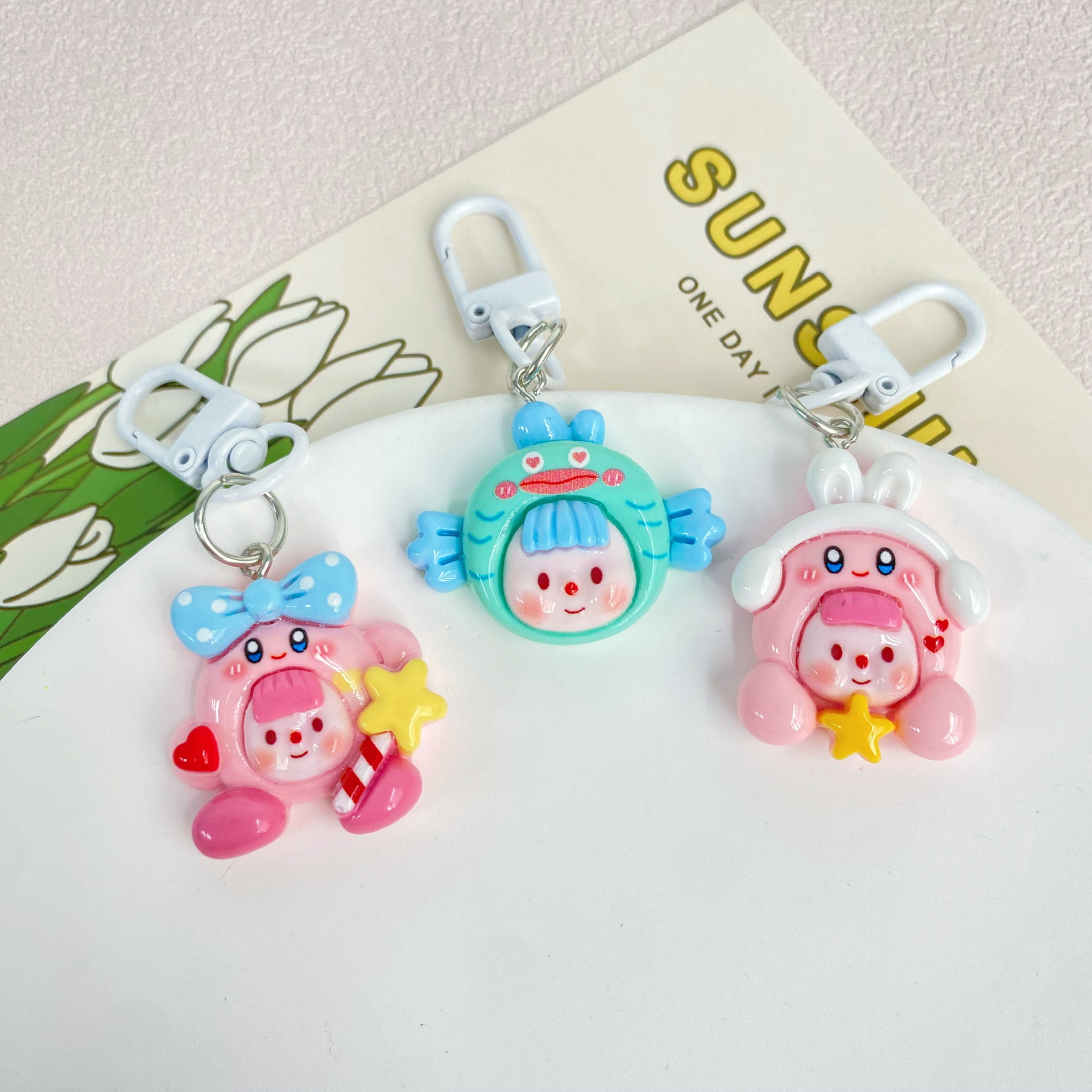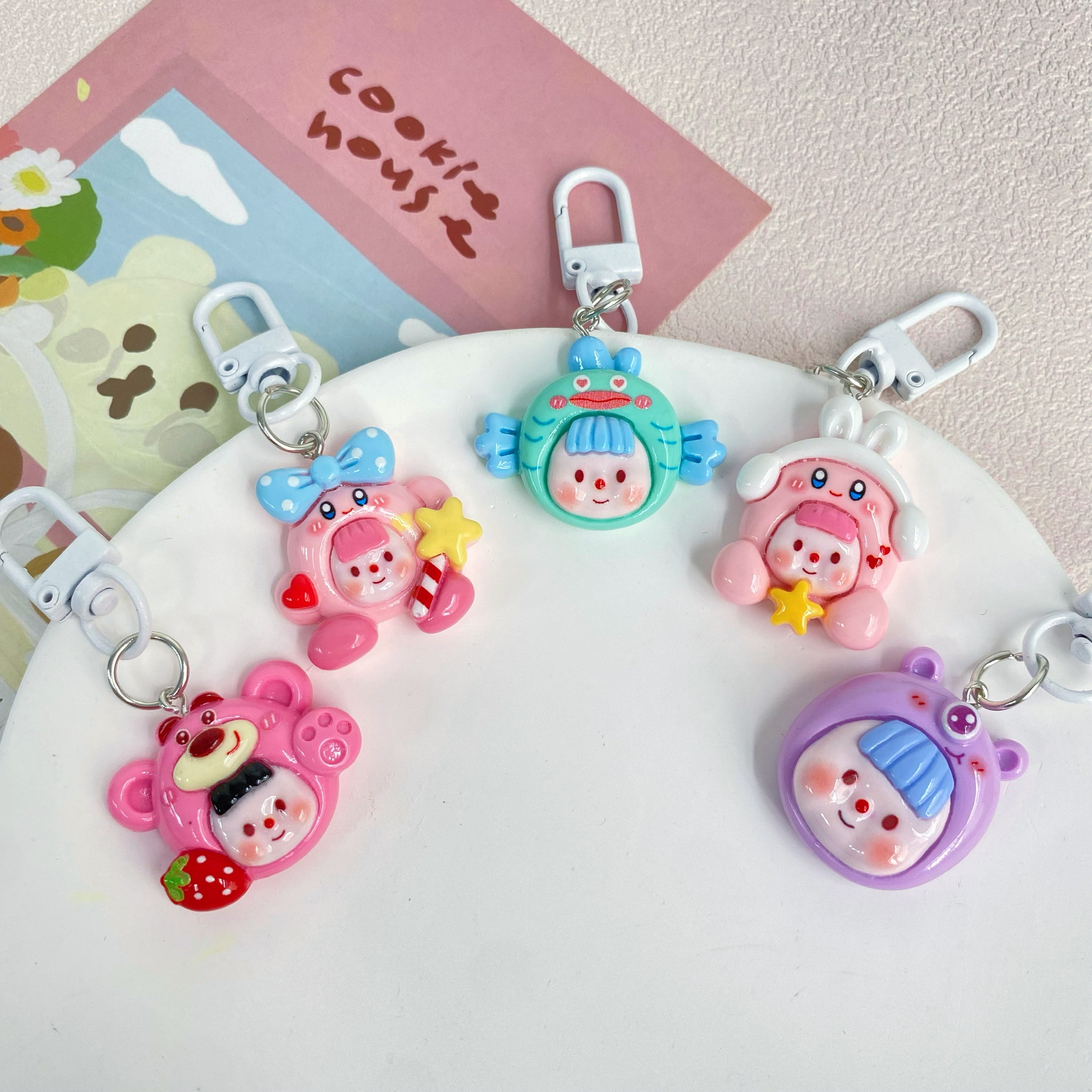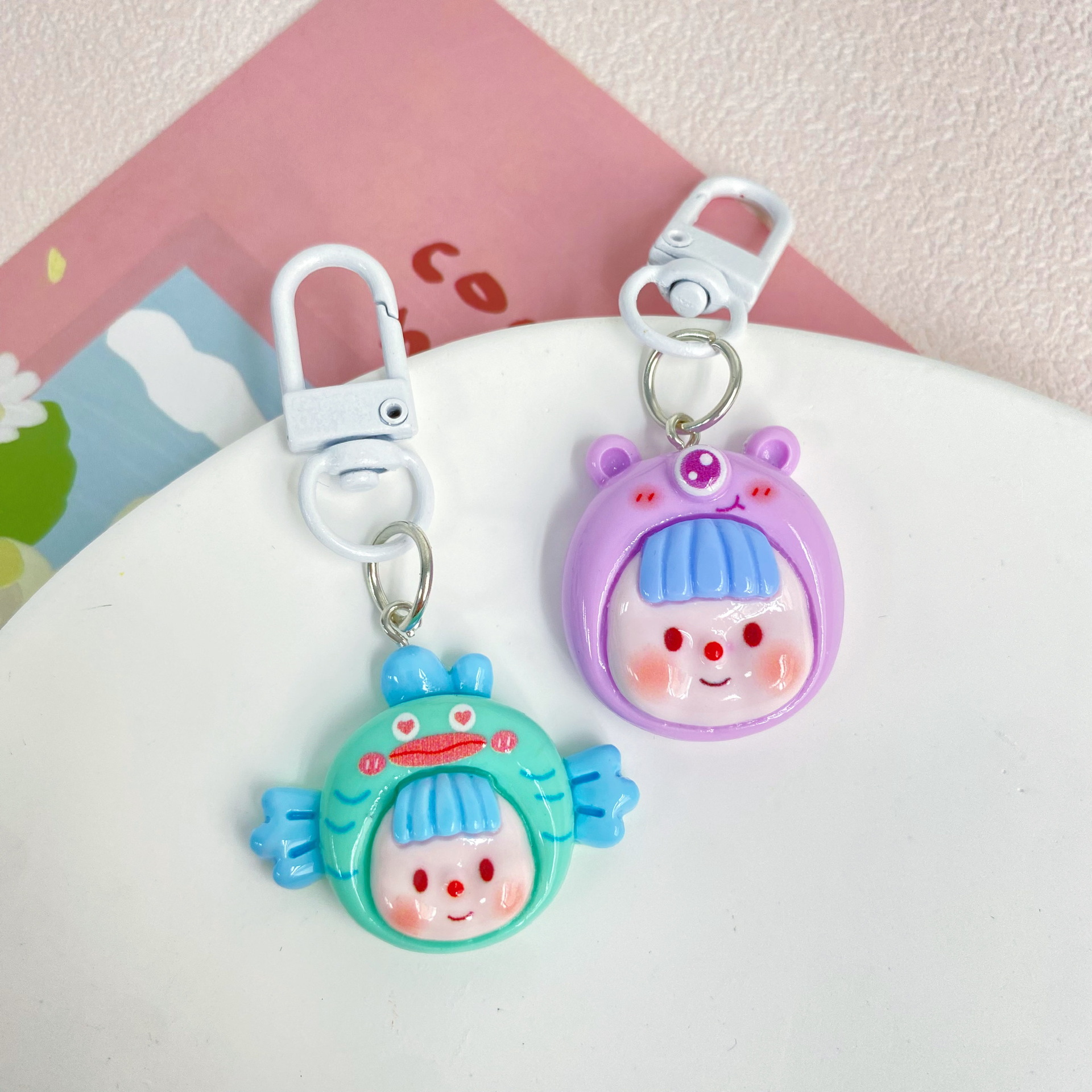 귀여운 듀오 원피스 키 체인 인 소녀 하트 펜던트 만화 커플 스쿨백 여자 친구 선물 액세서리 매달려 장식품