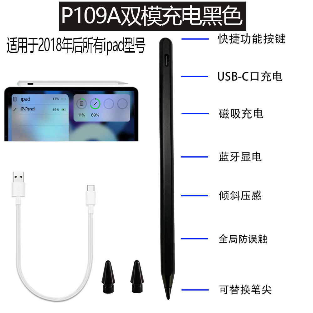 • P109A Apple 전용 검정색 자기 충전 iPad(타입C + 무선 충전)