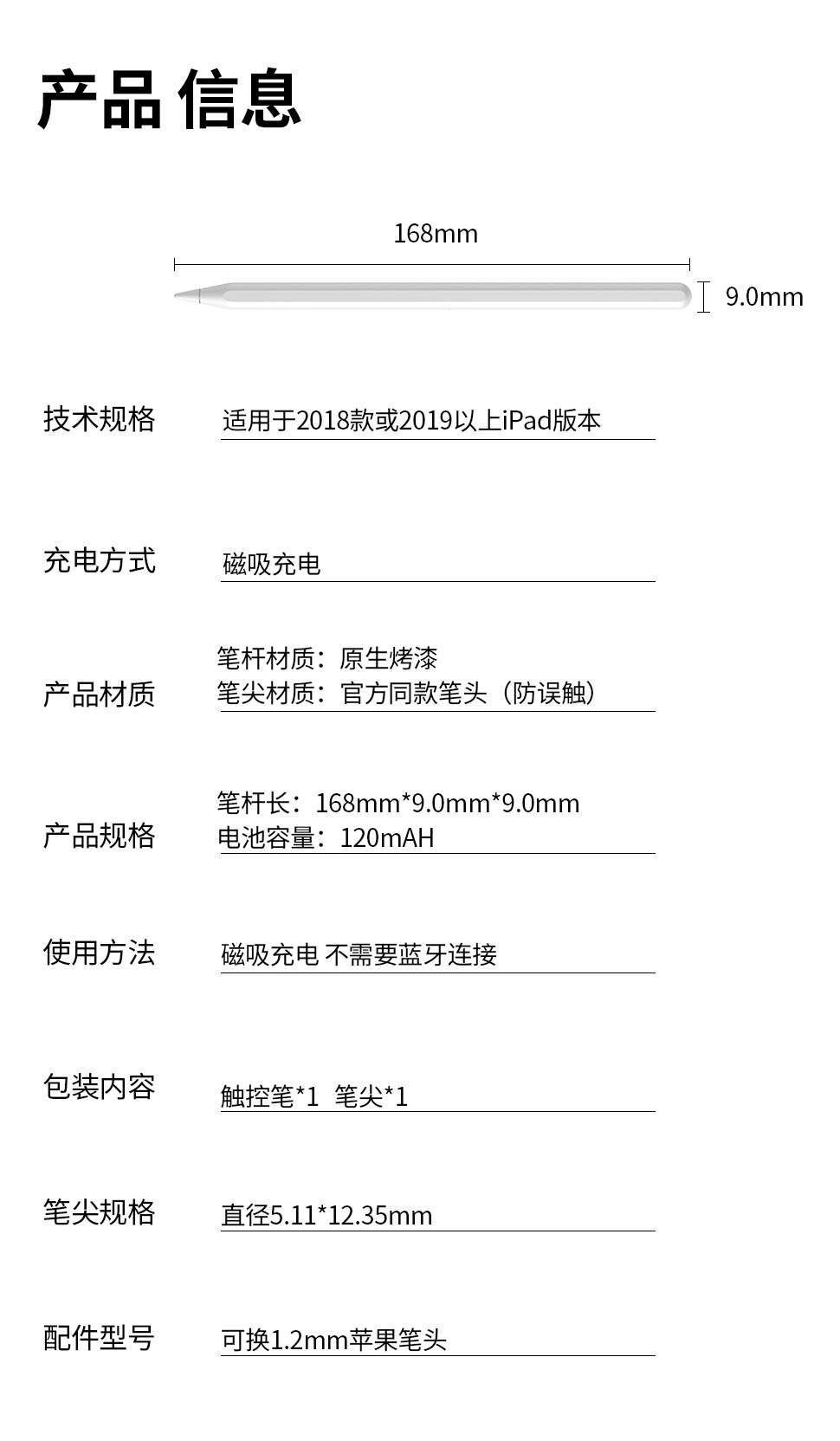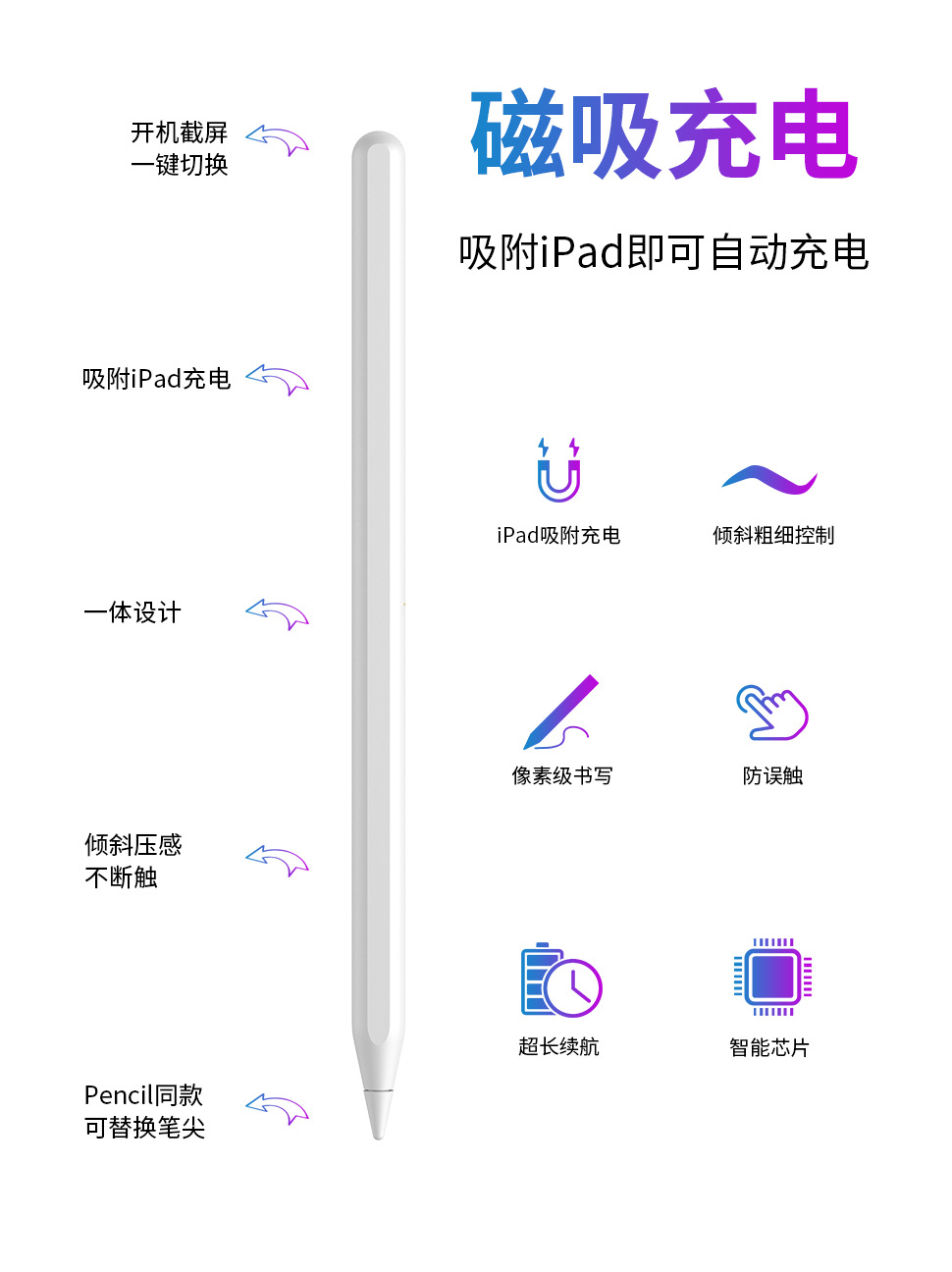 애플 정전식 펜, 아이패드 전용 터치스크린 펜, 3세대 자기흡착 충전 펜, 애플 태블릿 터치 스타일러스 펜에 호환 가능