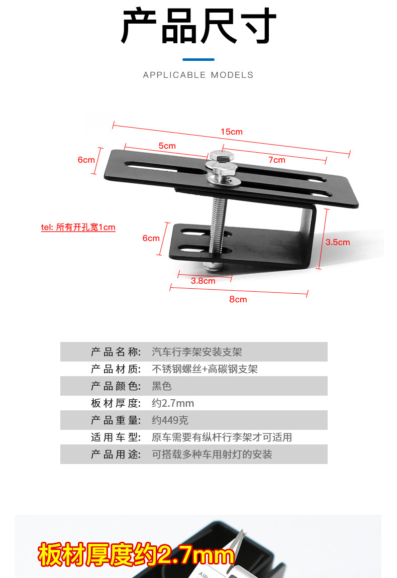 버클 지붕 스포트라이트 브래킷 액세서리 클립 클립 suv 수정 수하물 프레임 액세서리를 고정하는 자동차 수하물 랙