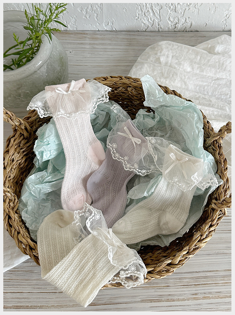 아기 양말 여름 얇은 통기성 메쉬 양말 뼈없는 느슨한 양말 튜브 양말 어린이 레이스 공주 양말스토어 가기