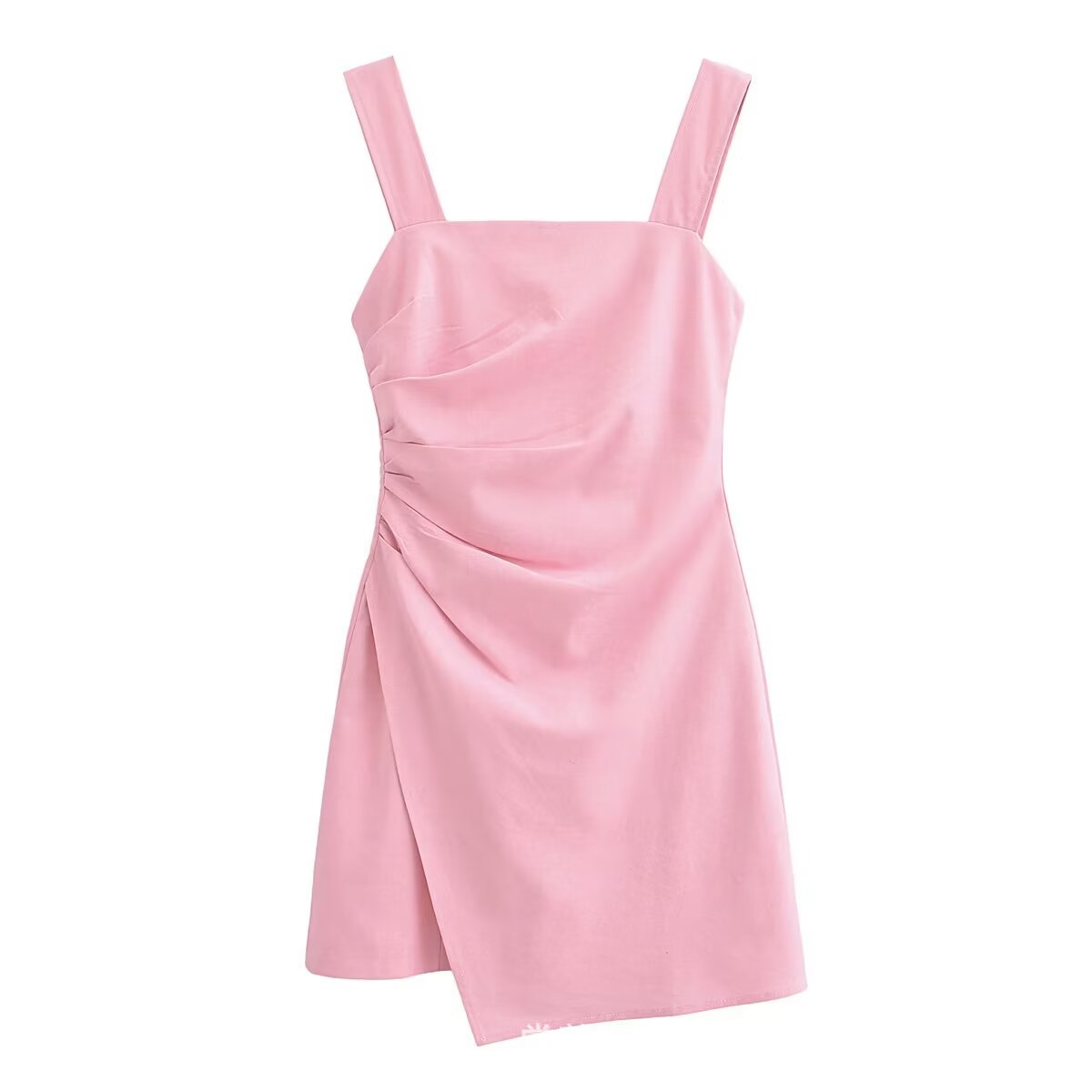 UC & ZA 국경 아마존 유럽과 미국 스타일 여름 여성 레트로 스퀘어 칼라 허리 주름 린넨 섹시한 원피스