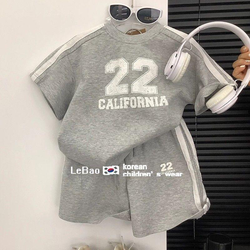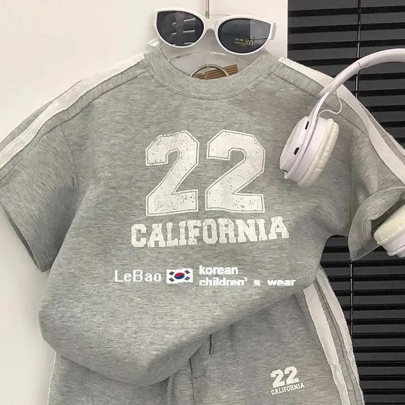 2025년 신상 한국판 아동 여름복 남아 여아 스포츠복 유아 캐주얼 반팔 반바지 투피스 세트