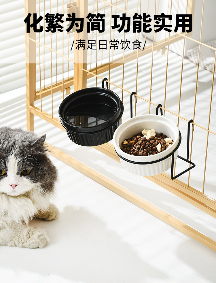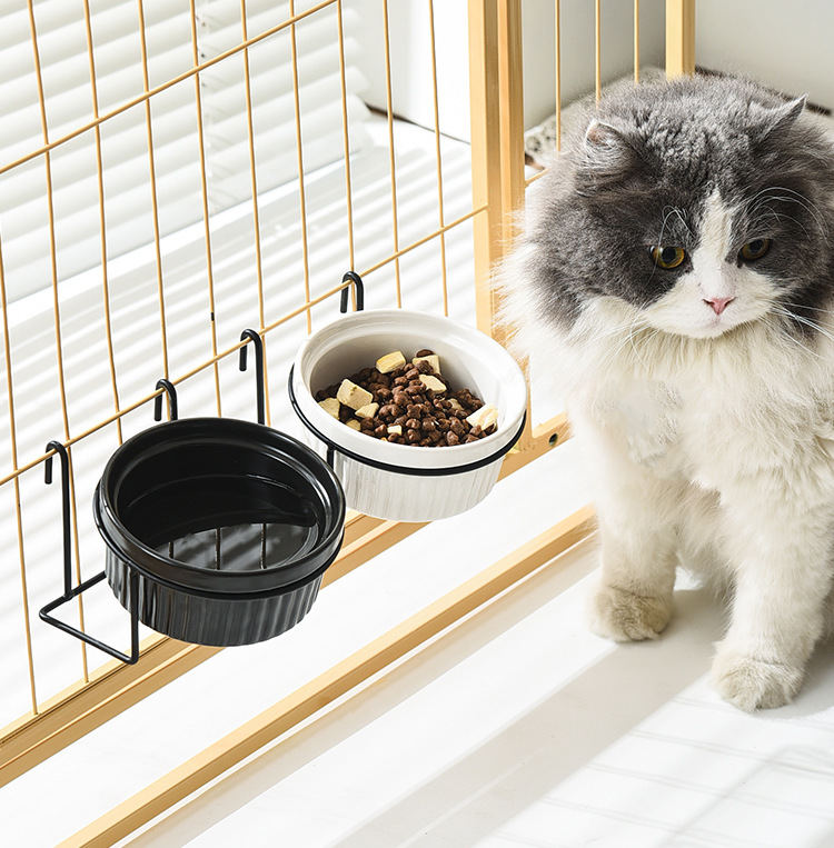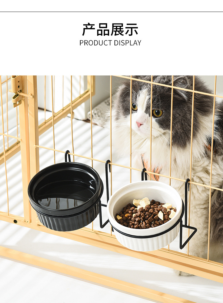 고양이 그릇 세라믹 고양이 음식 분지 교수형 케이지 고정 고양이 음식 분지 전복 방지 애완 동물 강아지 고양이 마시는 물 케이지 그릇스토어 가기