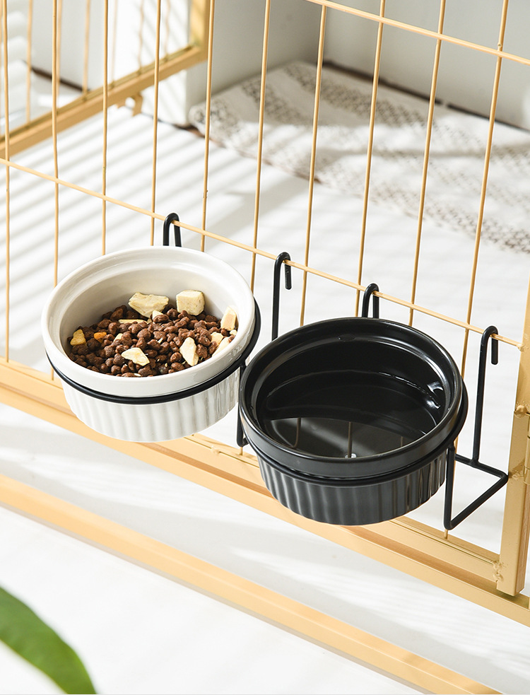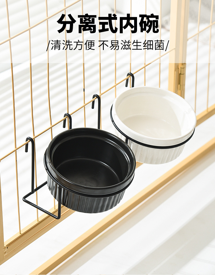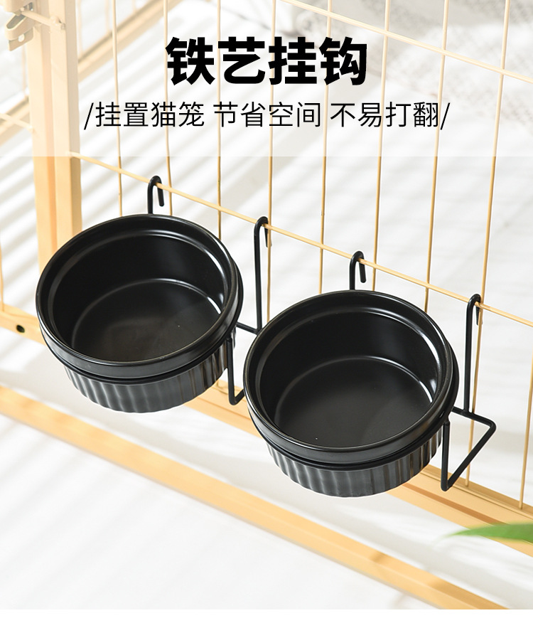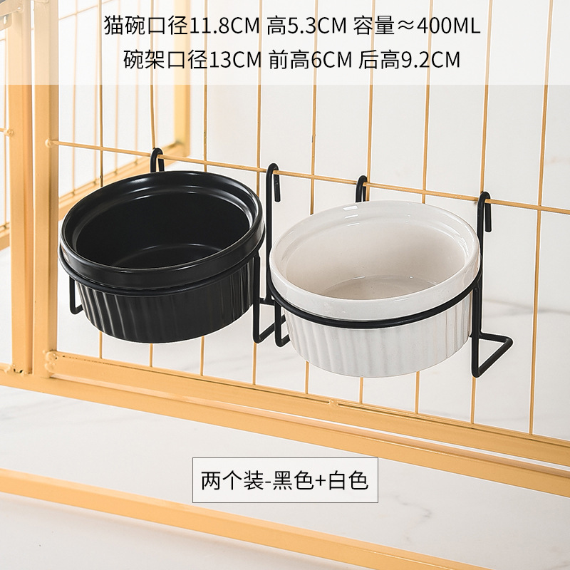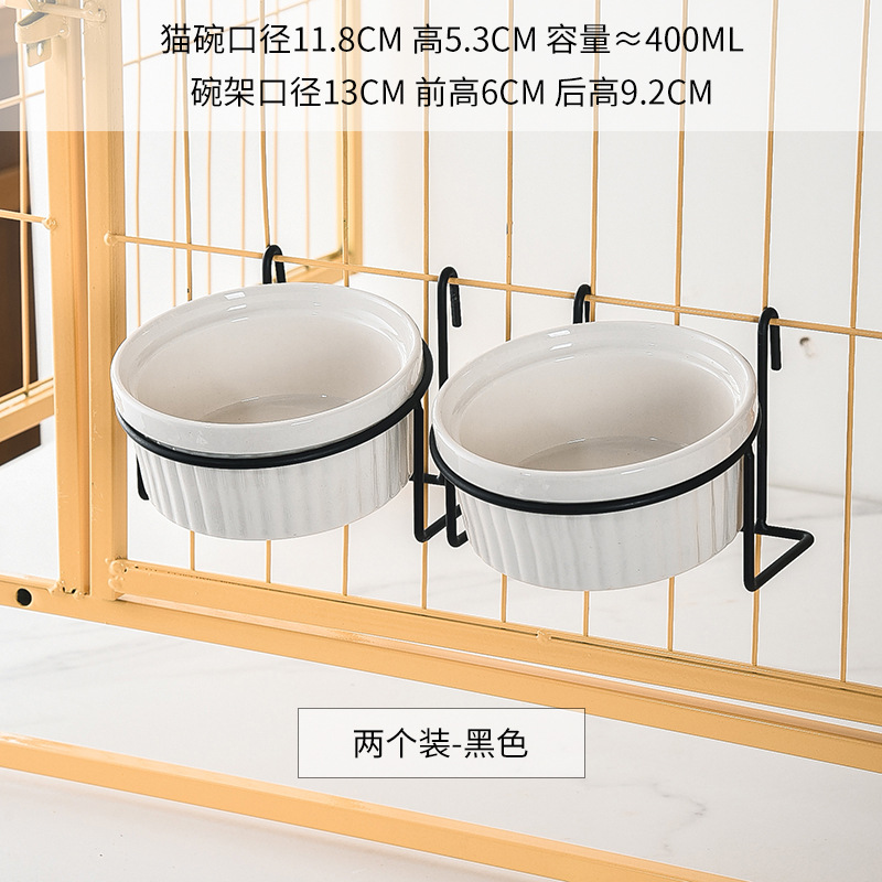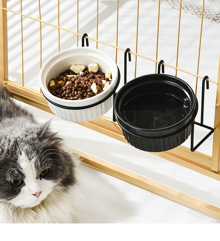 고양이 그릇 세라믹 고양이 음식 분지 교수형 케이지 고정 고양이 음식 분지 전복 방지 애완 동물 강아지 고양이 마시는 물 케이지 그릇