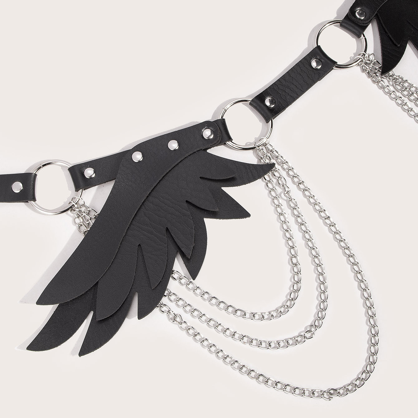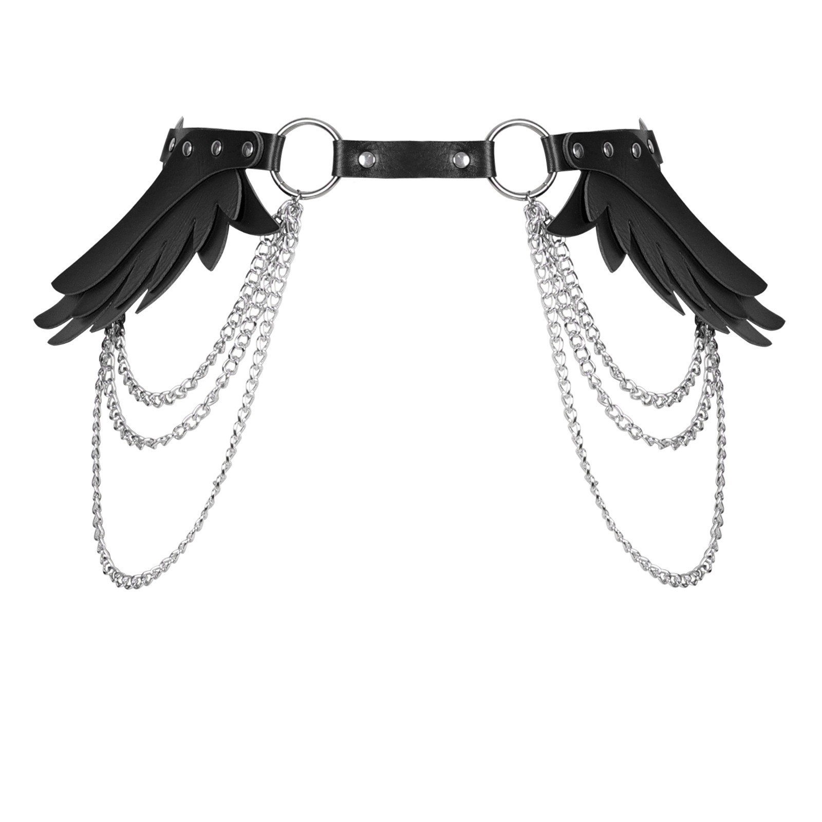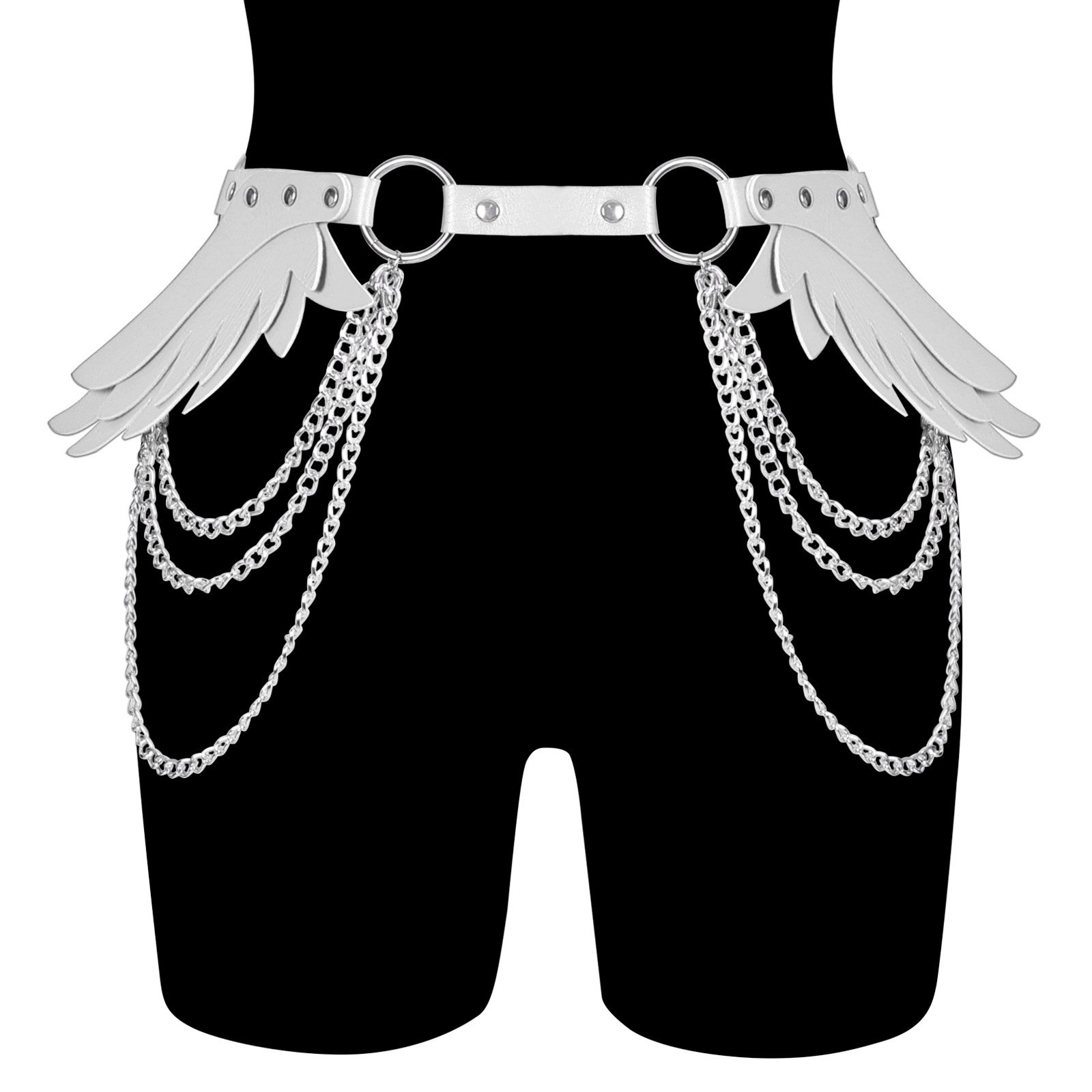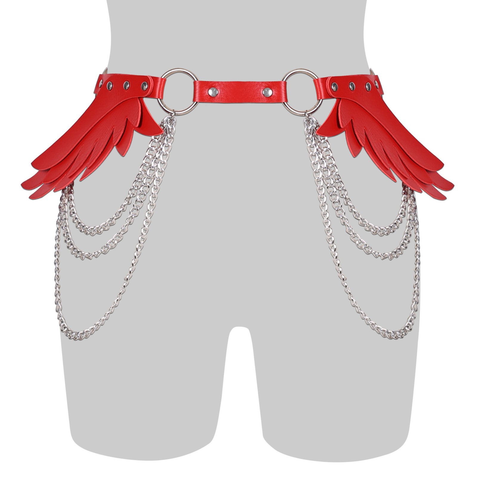 유럽식 블랙 화이트 레드 윙 스트랩 세트 여성용 가죽 모양 체인 구속 바디 스트랩 벨트 벨트
