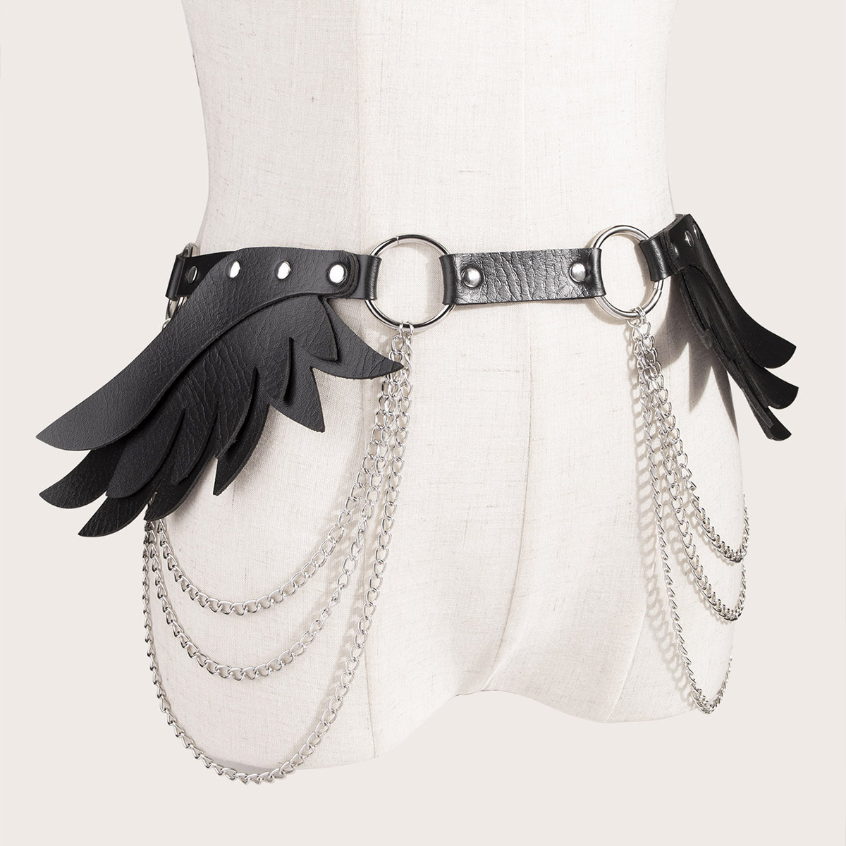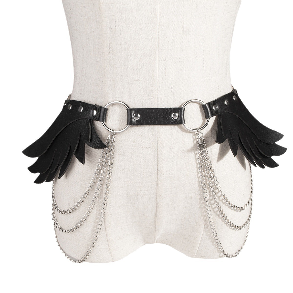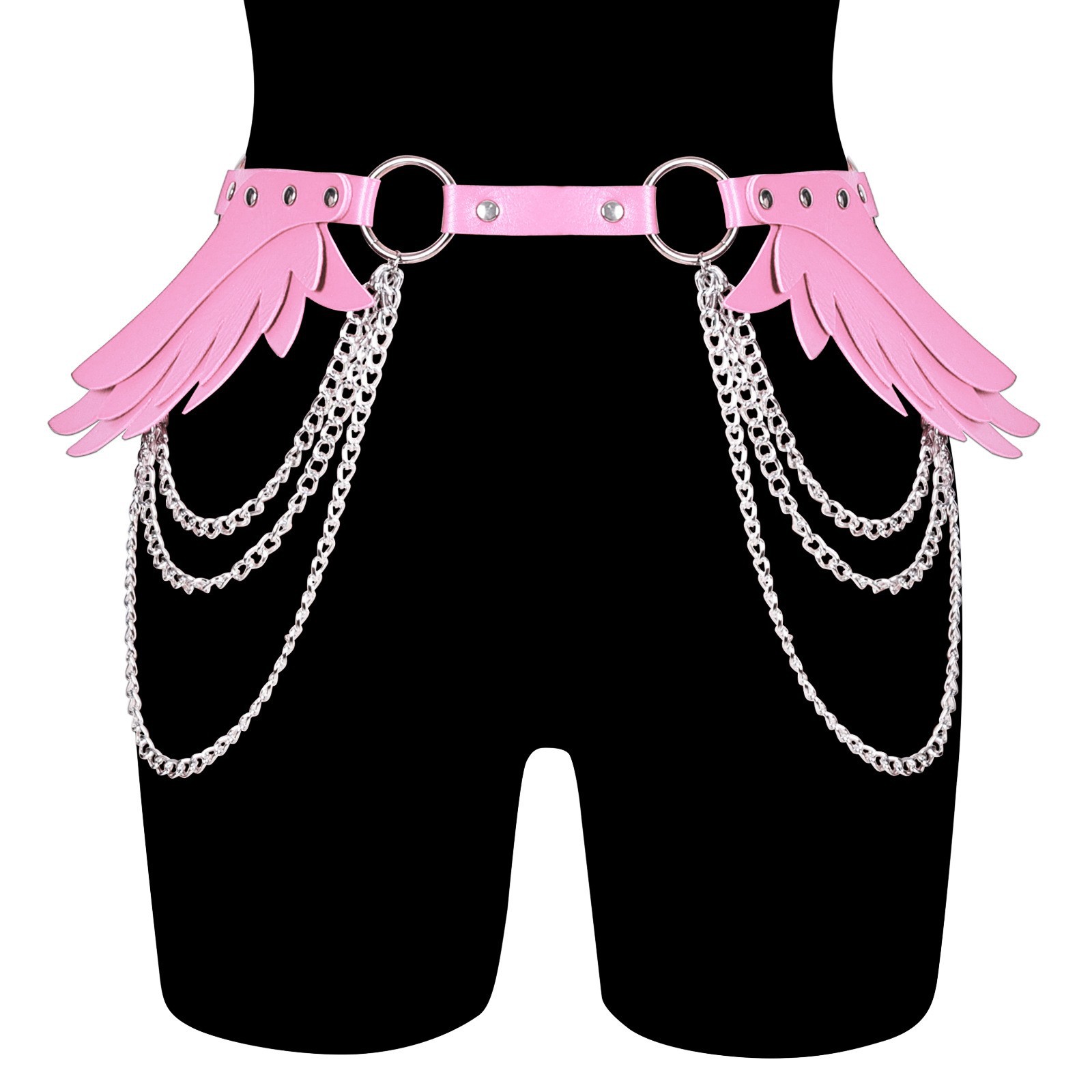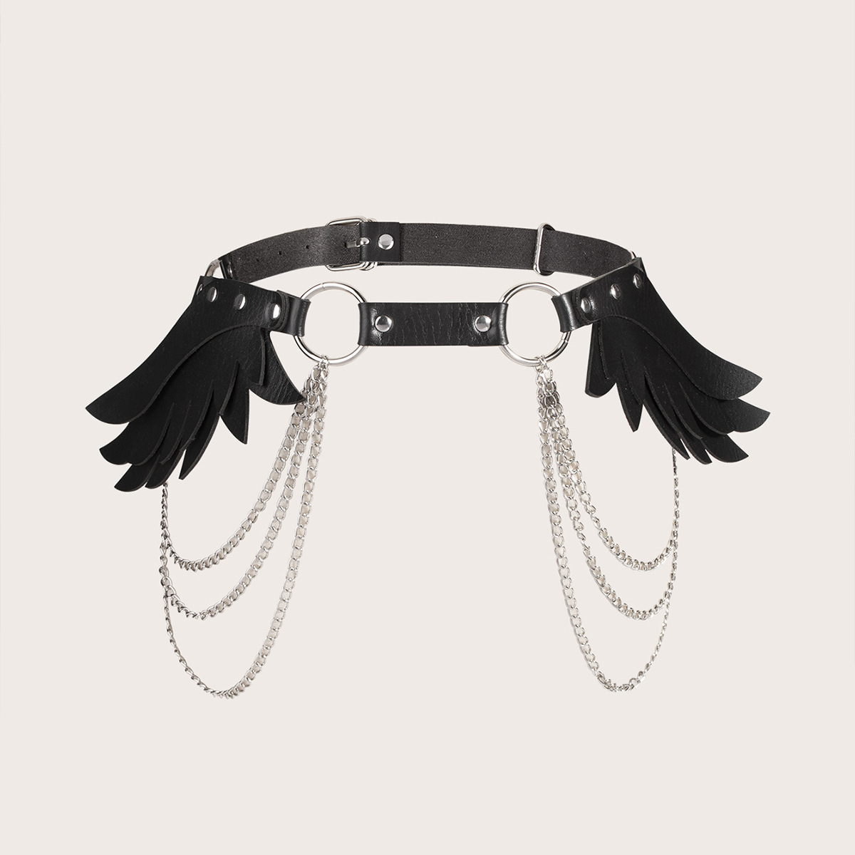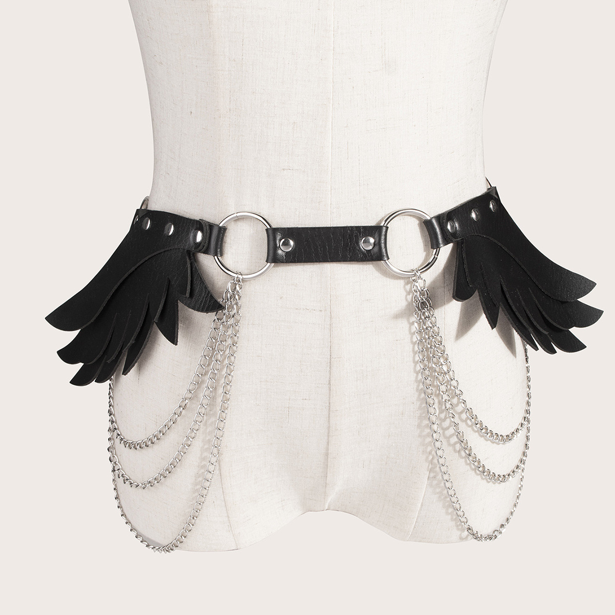 유럽식 블랙 화이트 레드 윙 스트랩 세트 여성용 가죽 모양 체인 구속 바디 스트랩 벨트 벨트
