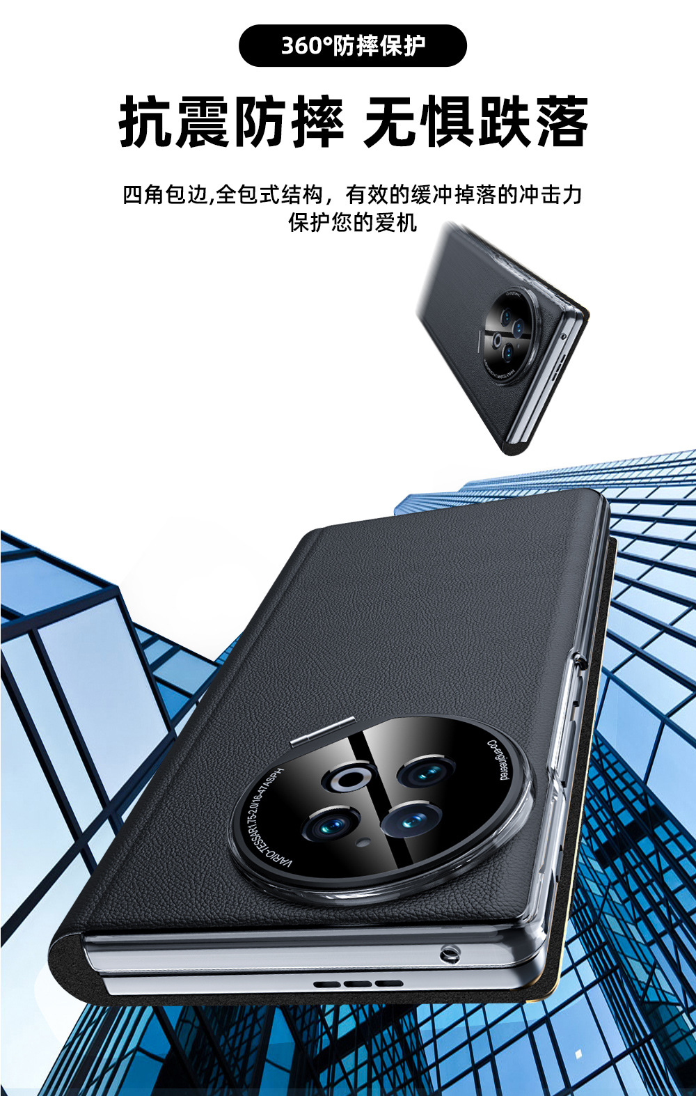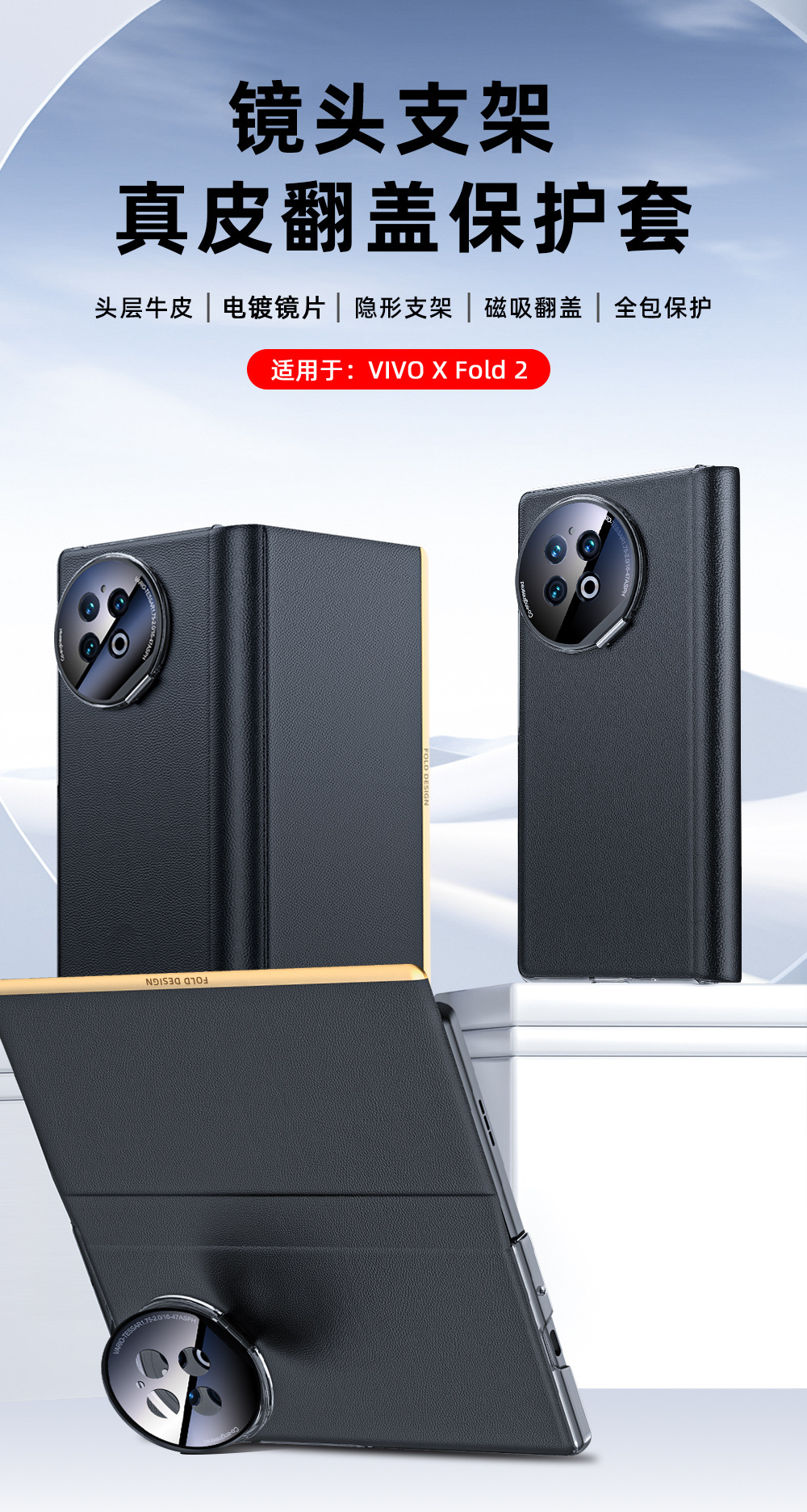 VIVOXFold2 가죽 케이스 휴대 전화 케이스 정품 가죽 나파 패턴 초박형 스마트 창 렌즈 브래킷 보호 케이스스토어 가기