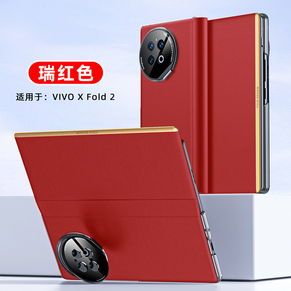 VIVOXFold2 가죽 케이스 휴대 전화 케이스 정품 가죽 나파 패턴 초박형 스마트 창 렌즈 브래킷 보호 케이스