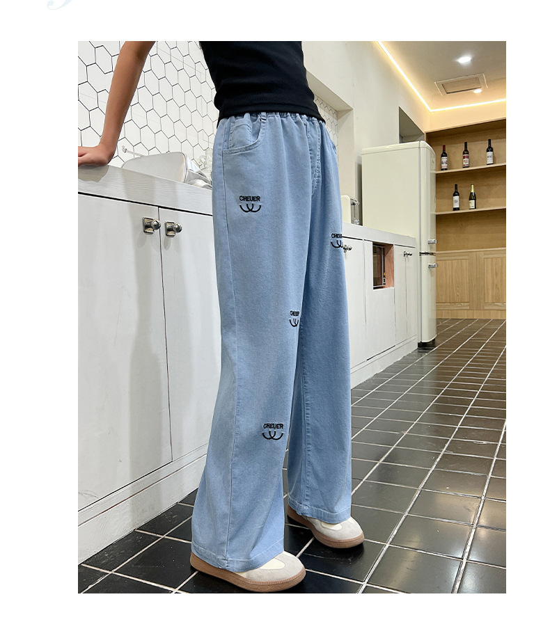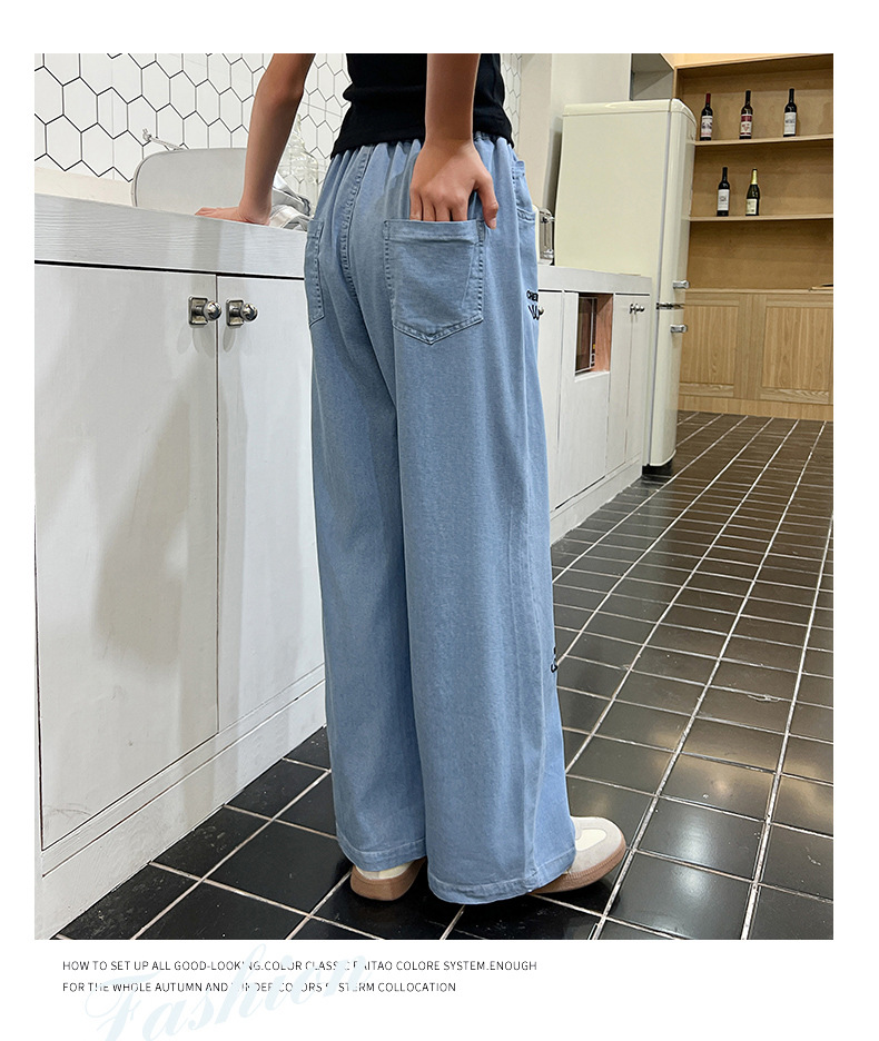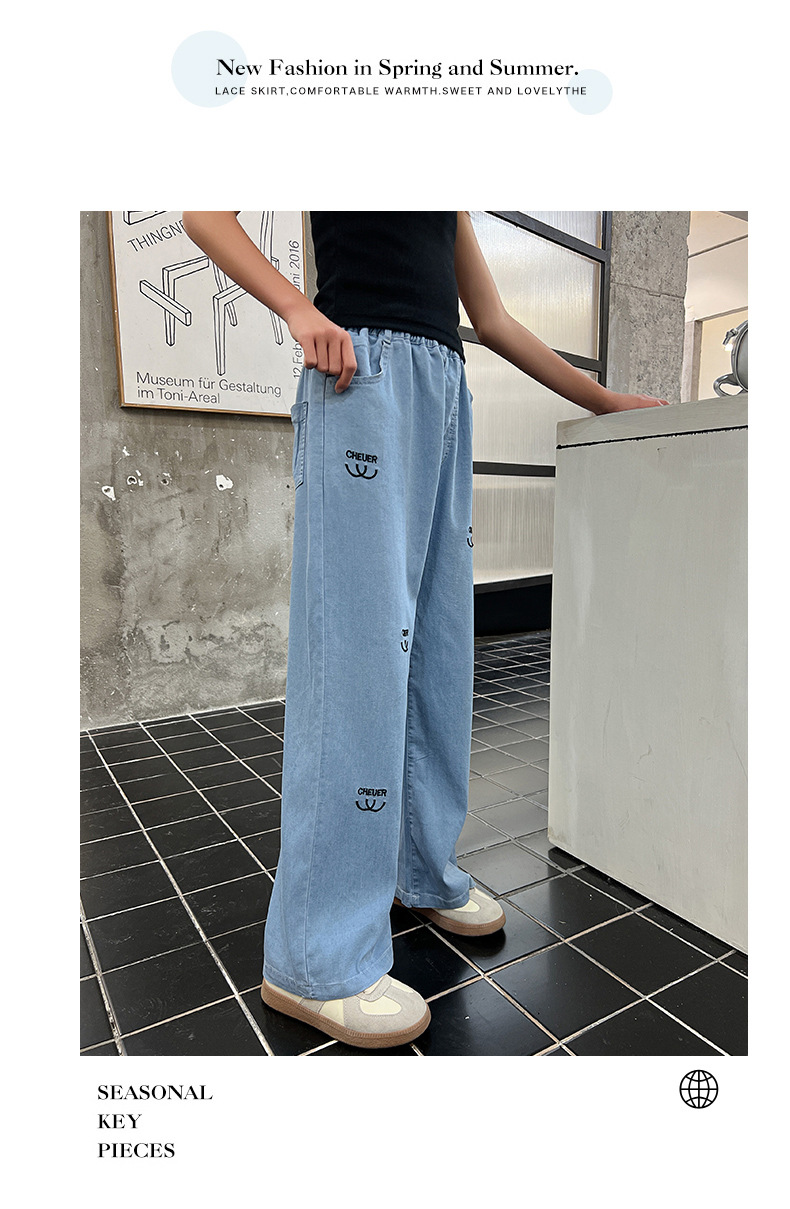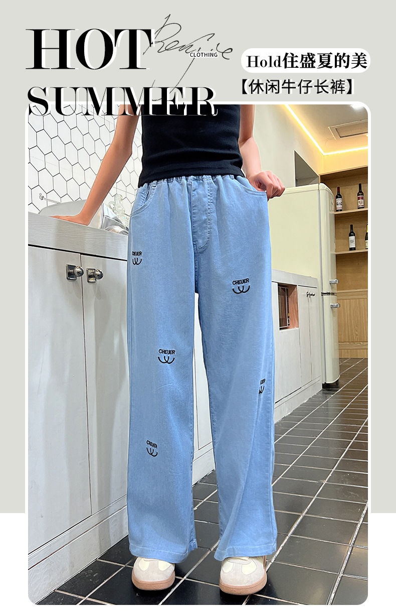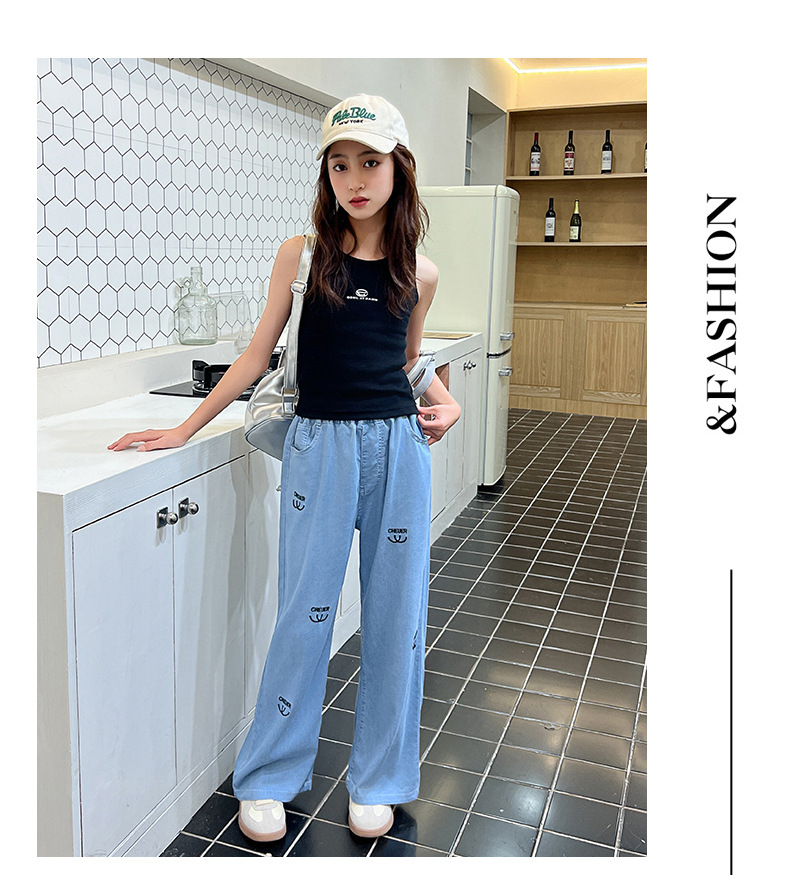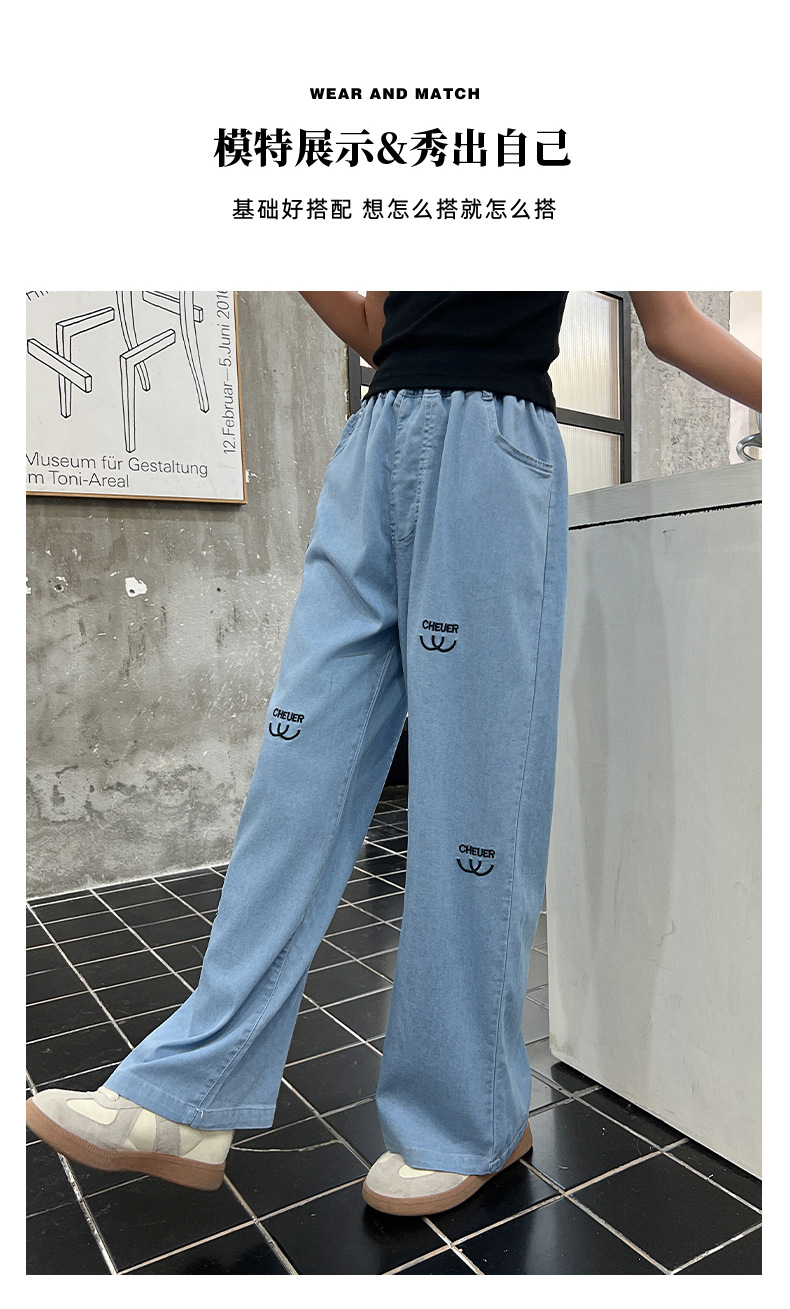 소녀 바지 여름 얇은 2024 새로운 어린이 여름 스트레이트 와이드 다리 안티 모기 바지 어린이 텐셀 청바지스토어 가기