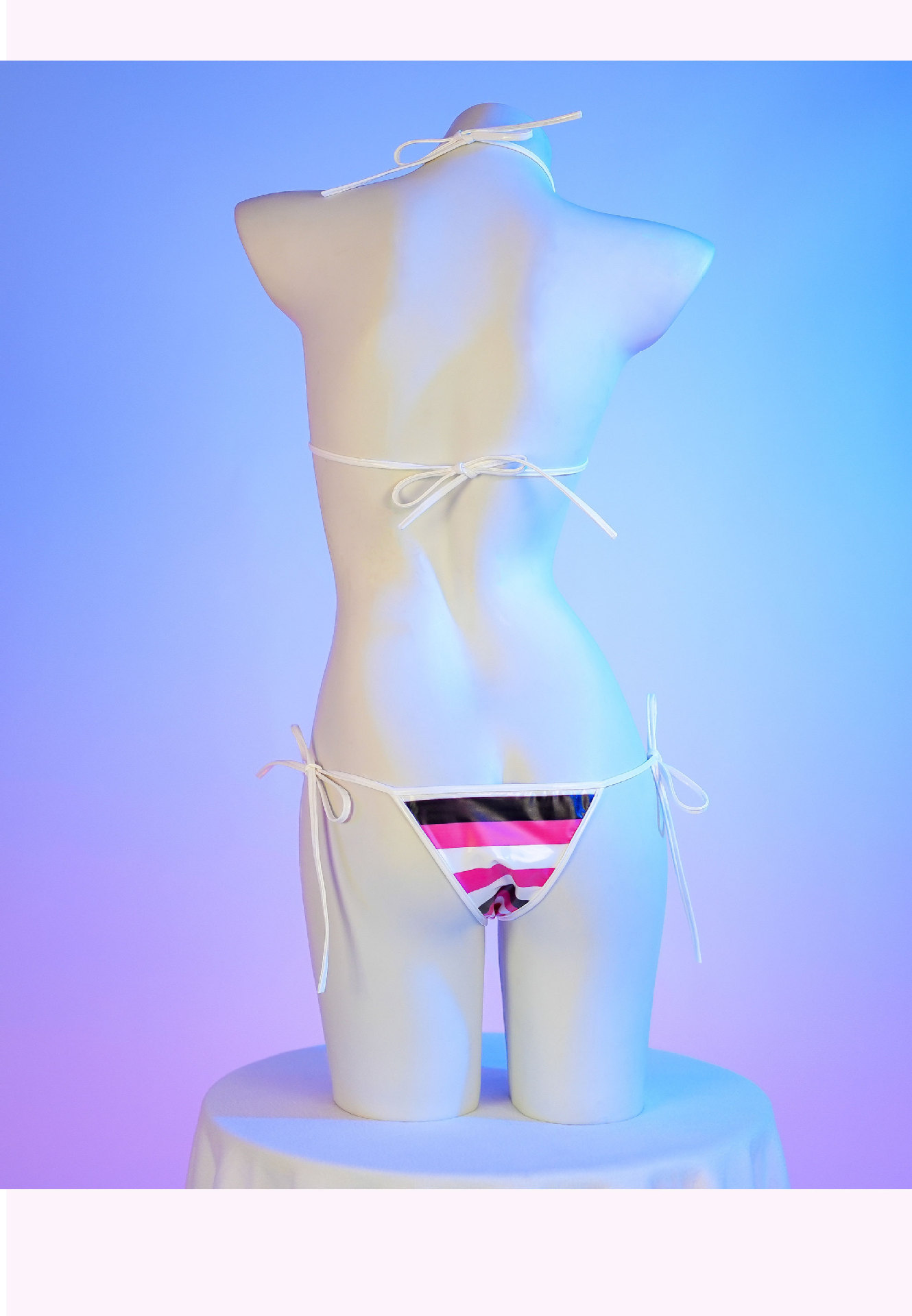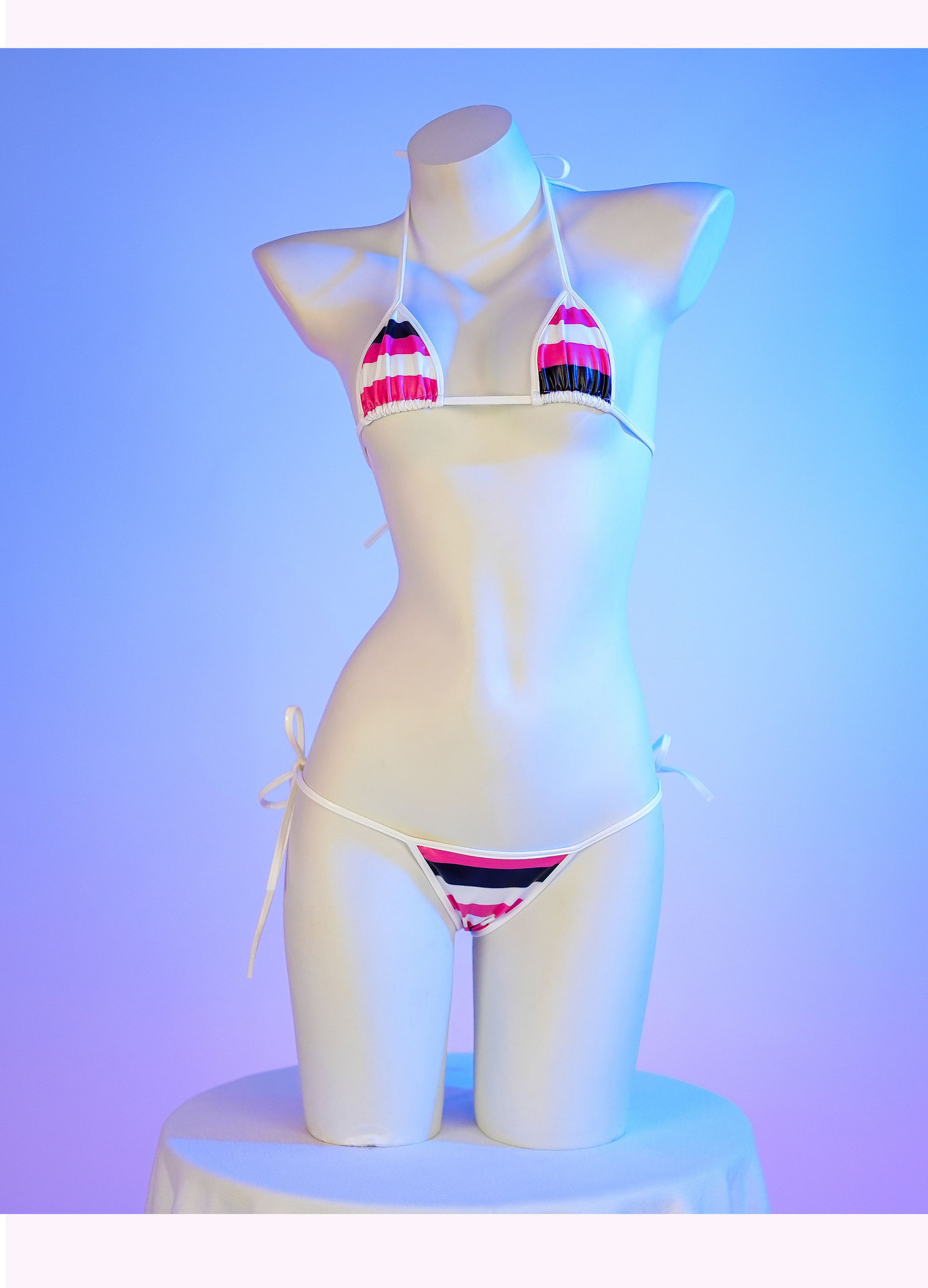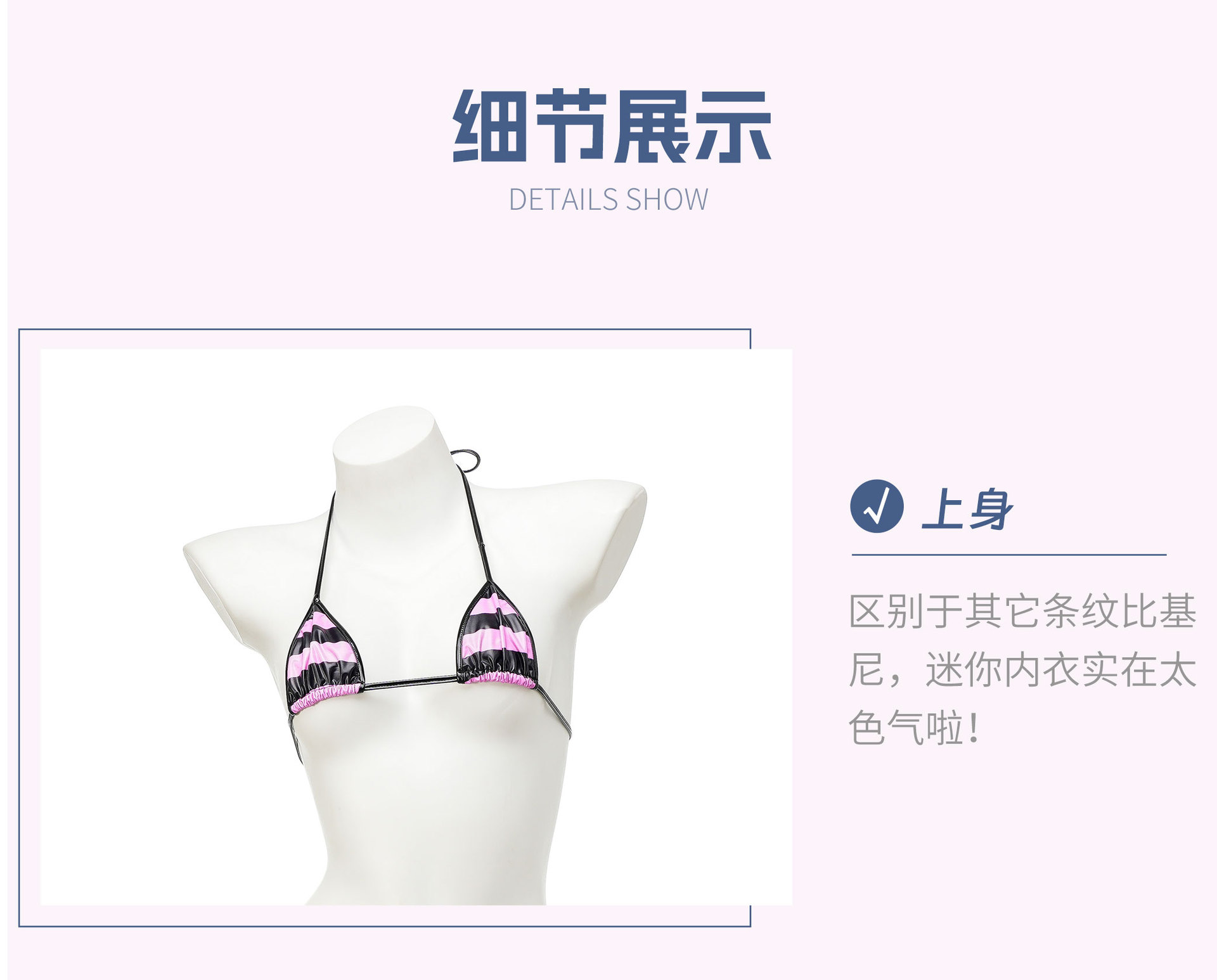 재미있는 특허 가죽 3 점 비키니 여성 줄무늬 인쇄 밴드 속옷 개인 잠옷 그림 C2114스토어 가기