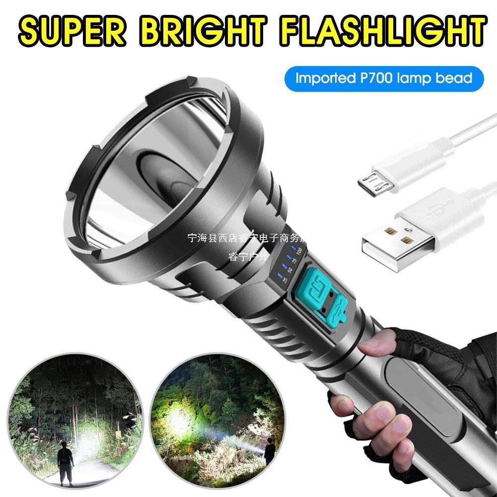 국경 플라스틱 손전등 USB 충전식 led 슈퍼 밝은 장거리 홈 야외 휴대용 시험 조명 손전등스토어 가기