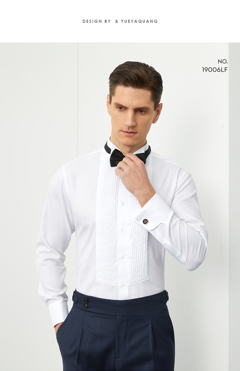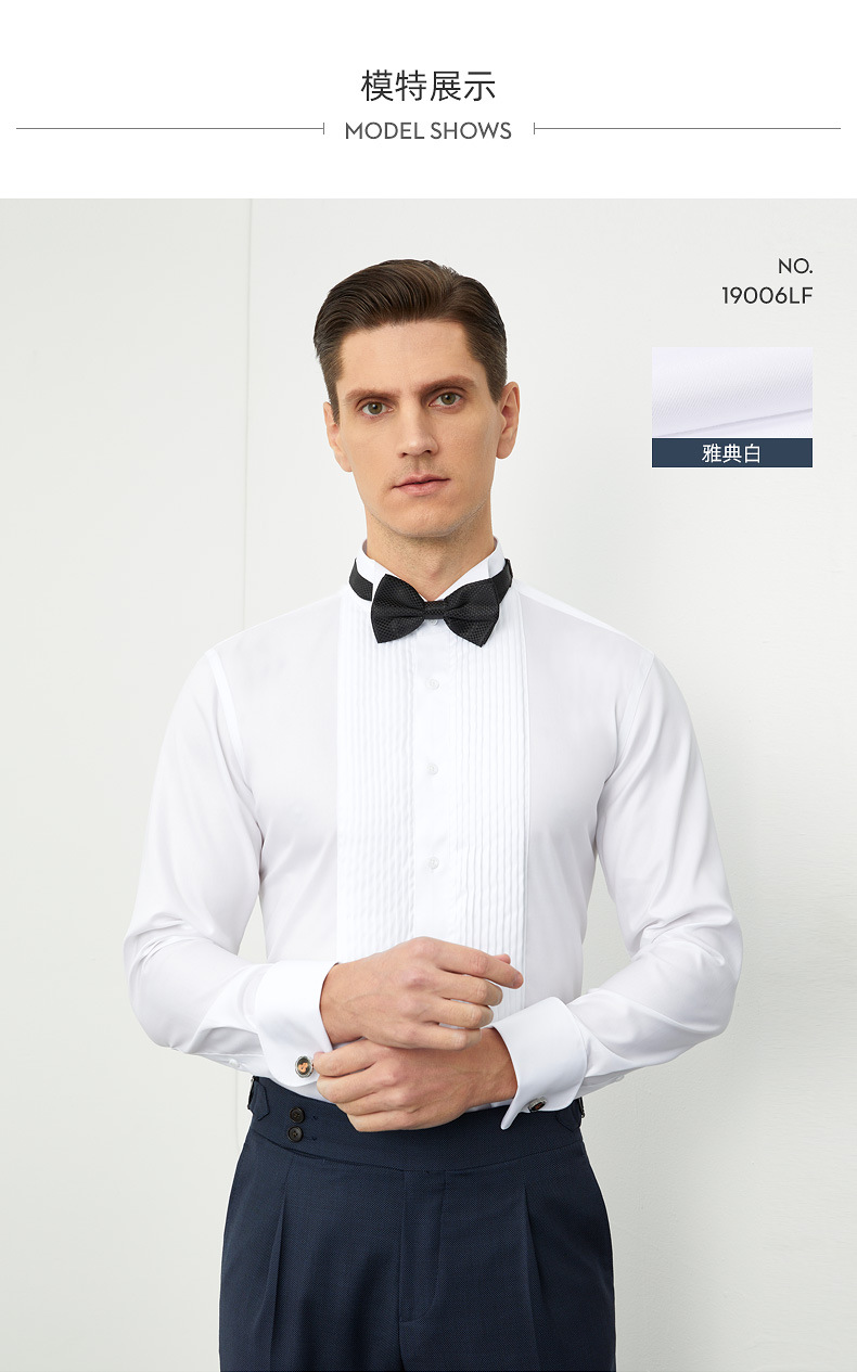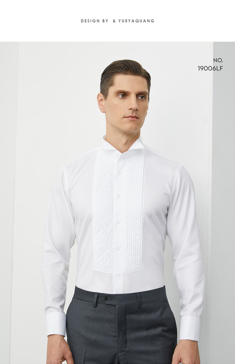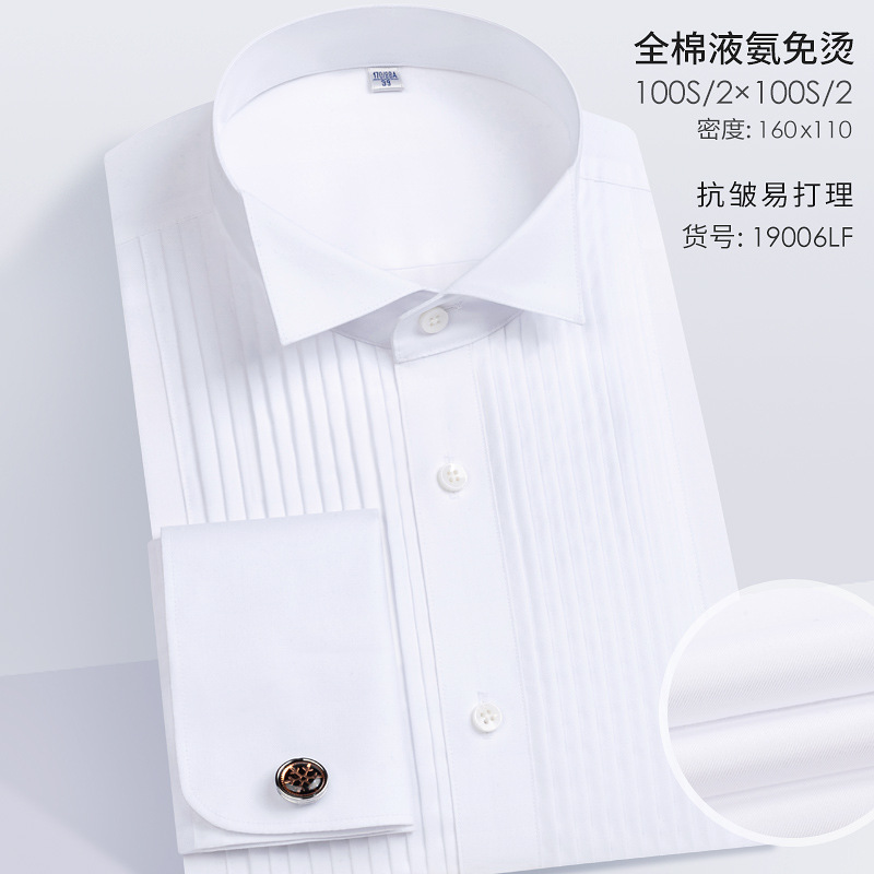 100S 코튼 남자 윙 칼라 프렌치 커프스 단추 셔츠 봄 새 남자 연회 원피스 화이트 셔츠 스팟
