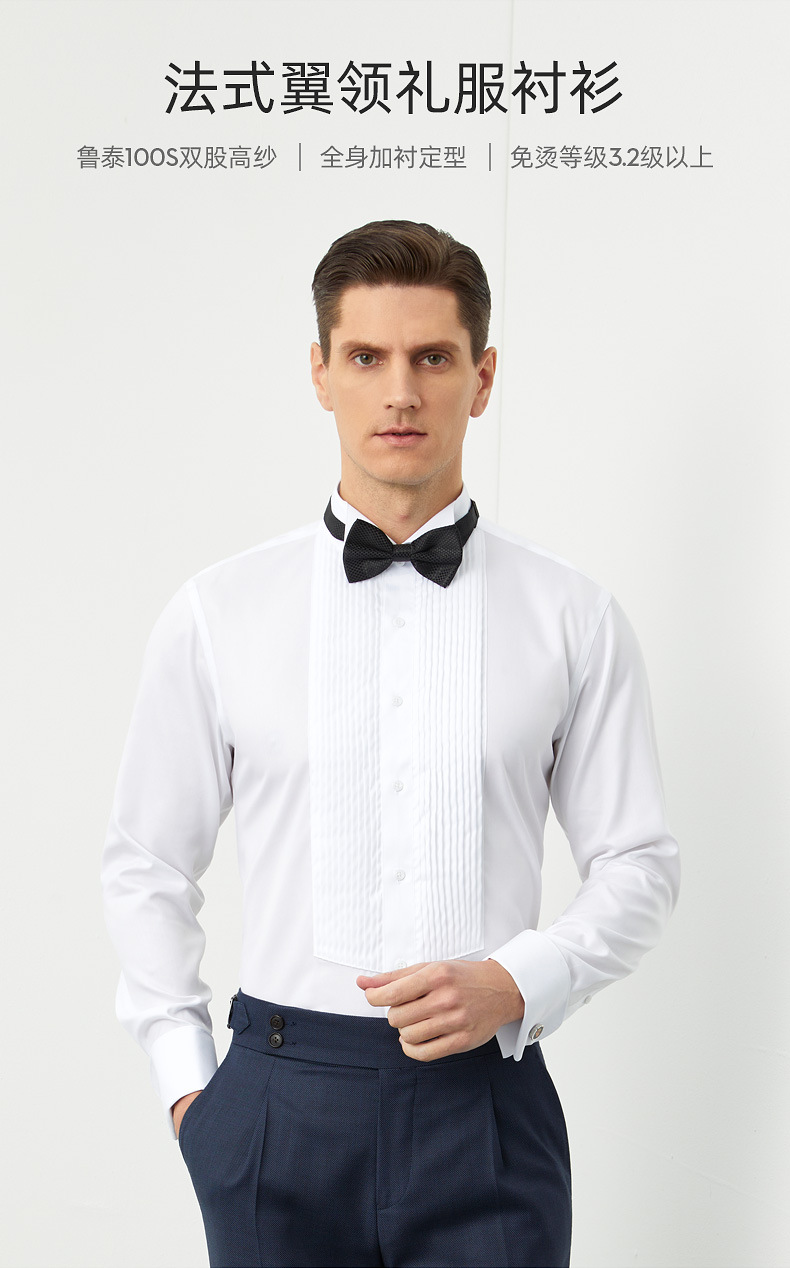 100S 코튼 남자 윙 칼라 프렌치 커프스 단추 셔츠 봄 새 남자 연회 원피스 화이트 셔츠 스팟스토어 가기