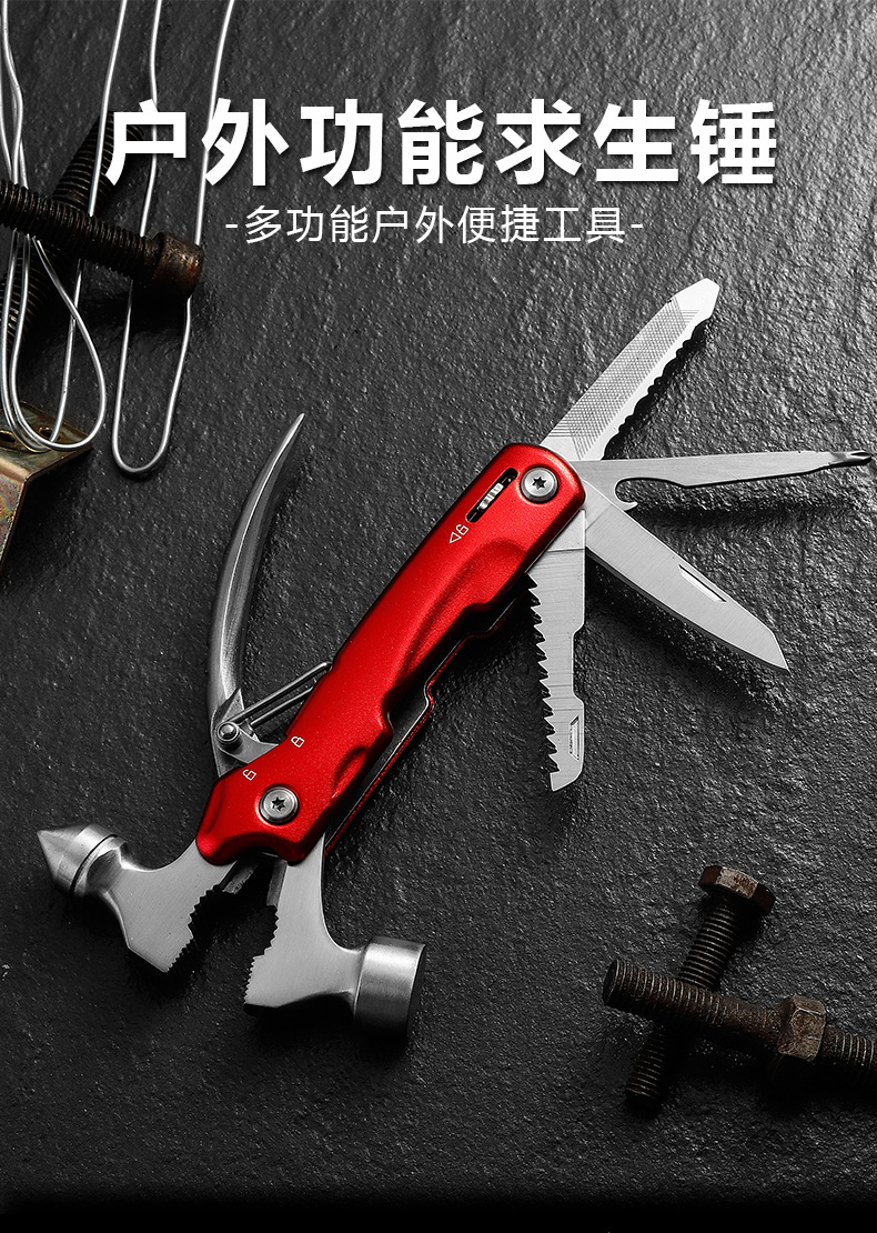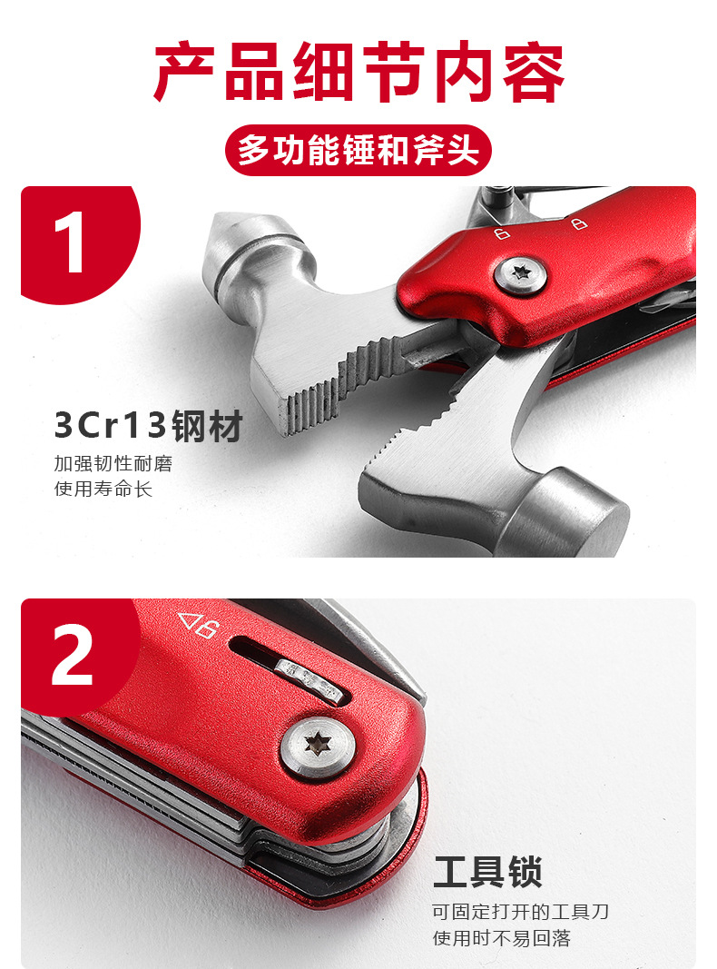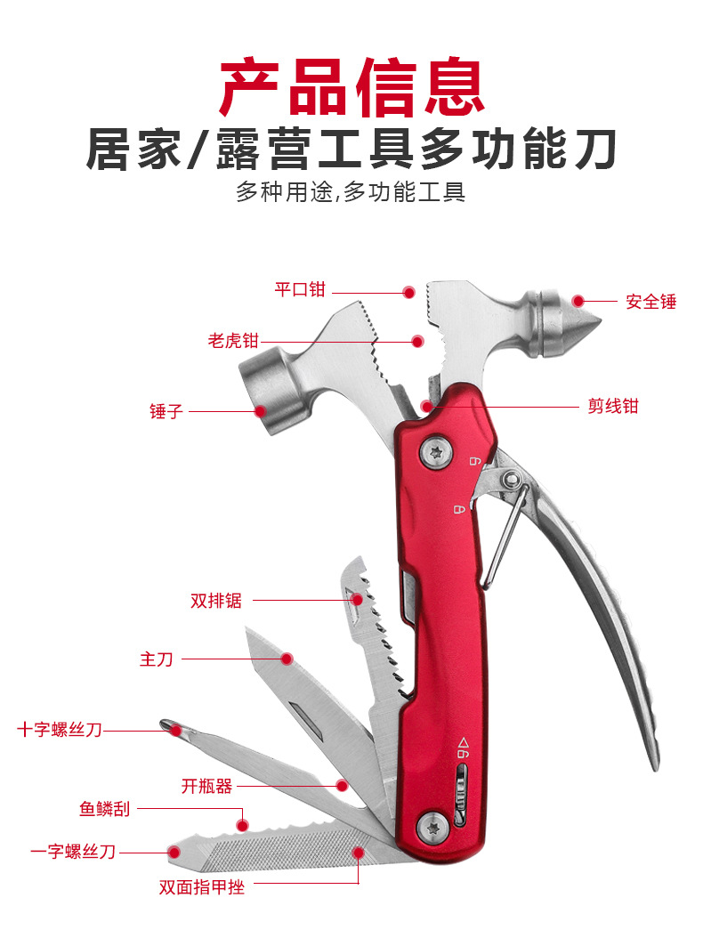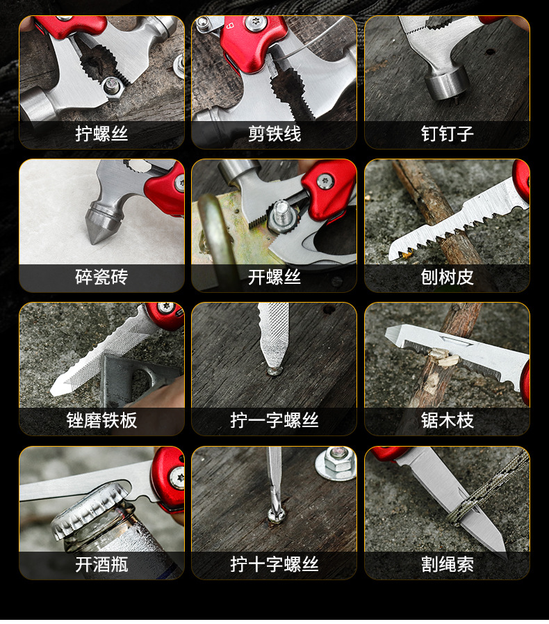 국경 간 뜨거운 판매 다기능 해머 야외 캠핑 다기능 해머 휴대용 해머 클램프 자동차 장착 방어 비상 해머