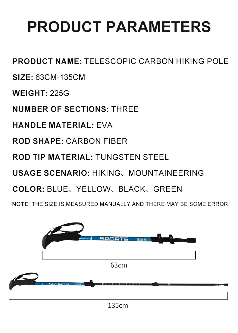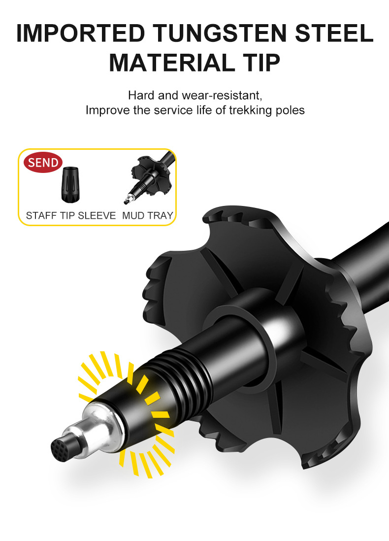 Attention: When using a hiking stick, please adjust according to the scale markings. The expansion and contraction of the upper and lower section buckles should not exceed the stop mark. Exceeding the stop mark may result in abnormal force damage (this is not a quality issue and does not include after-sales service)