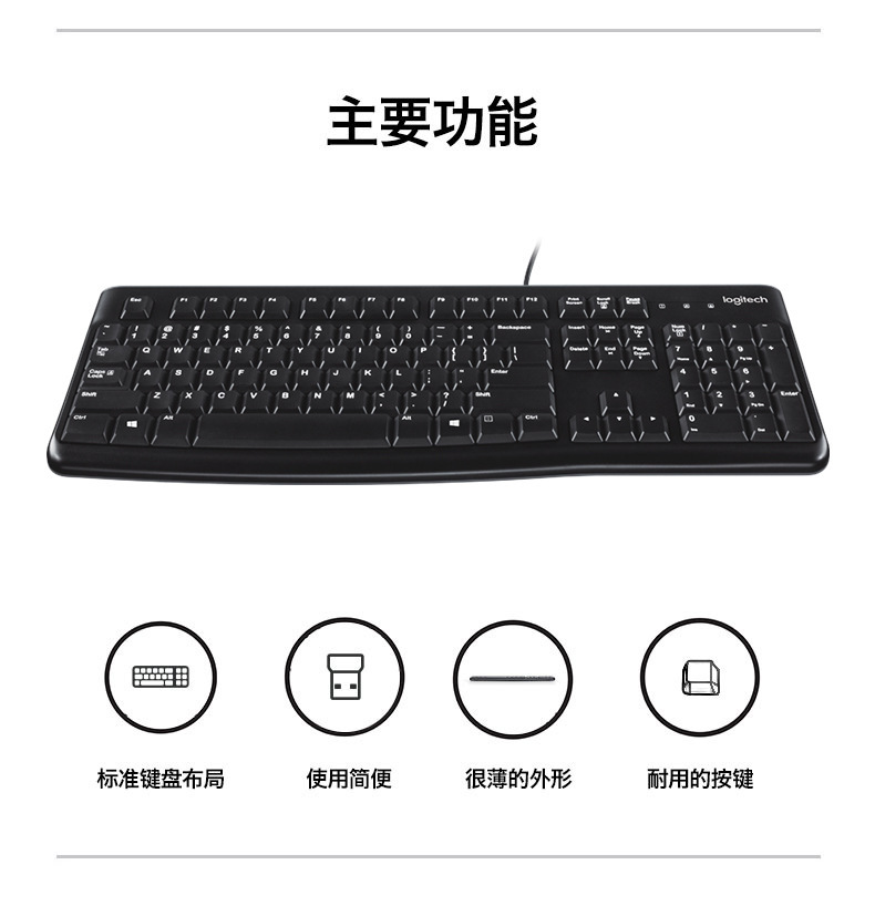 로지텍 로지텍 K120 유선 멤브레인 키보드 USB 홈 오피스 데스크톱 컴퓨터 방수 음소거스토어 가기