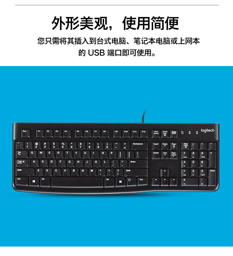 로지텍 로지텍 K120 유선 멤브레인 키보드 USB 홈 오피스 데스크톱 컴퓨터 방수 음소거