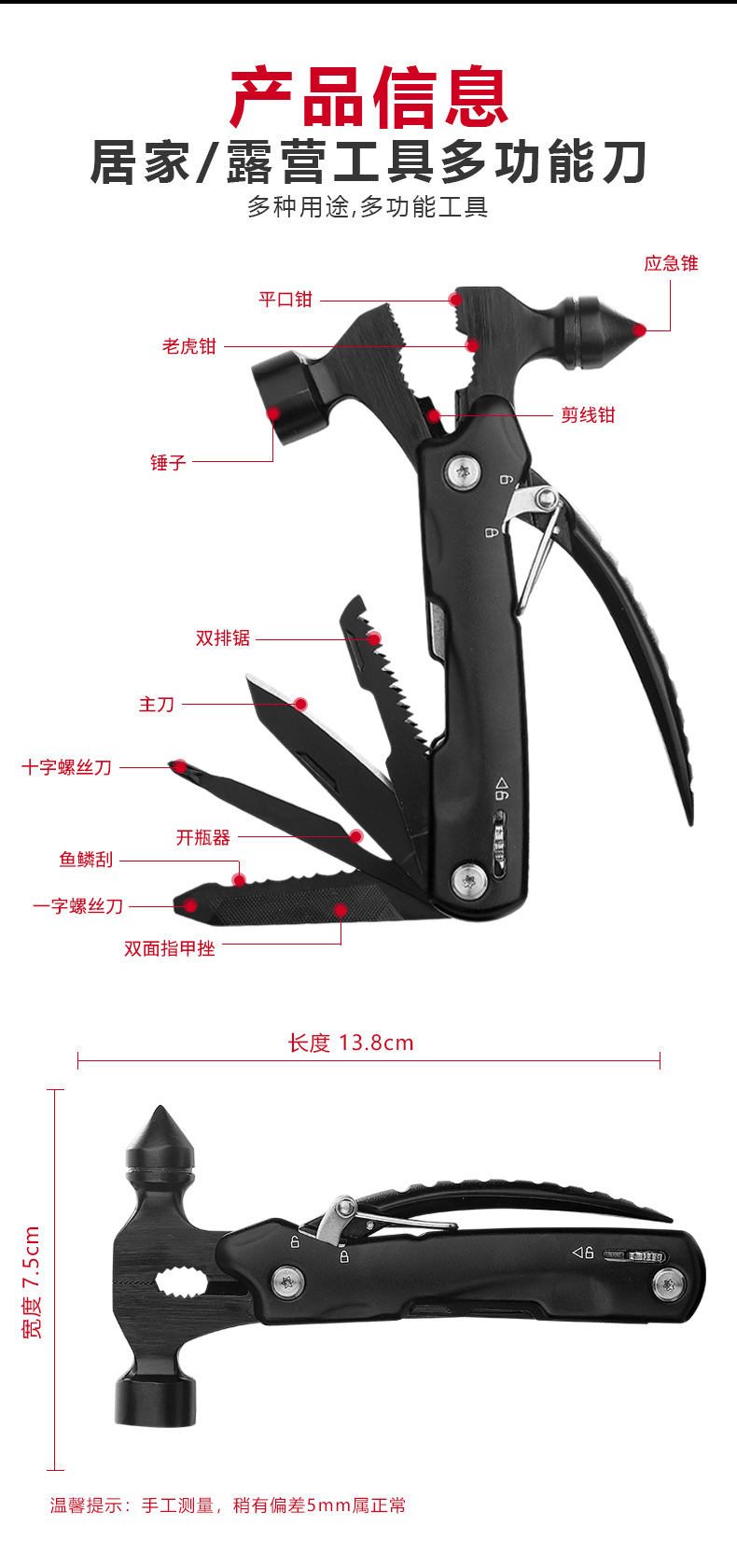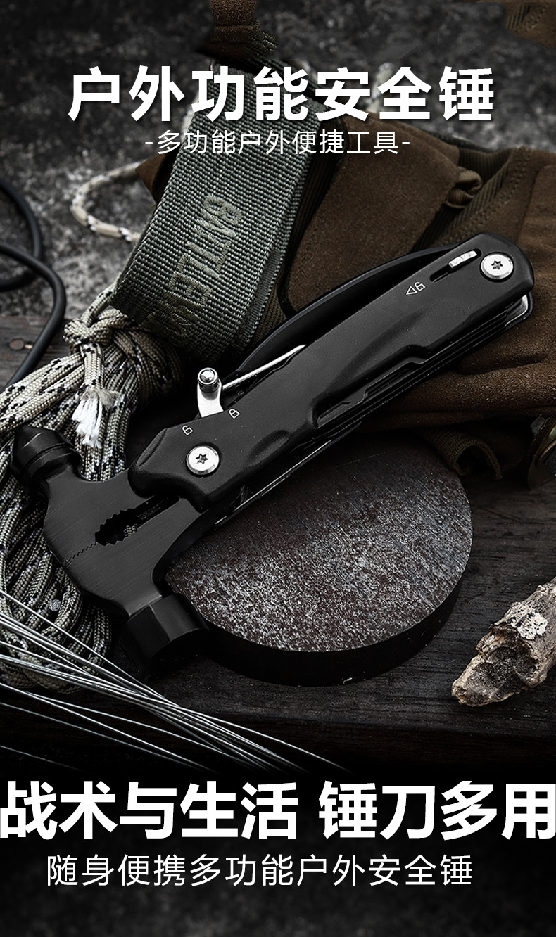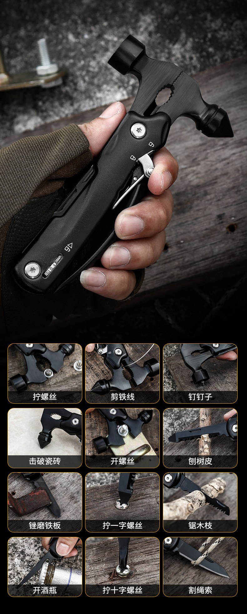 국경 간 뜨거운 판매 다기능 해머 야외 캠핑 다기능 네일 해머 야외 자기 방어 비상 해머