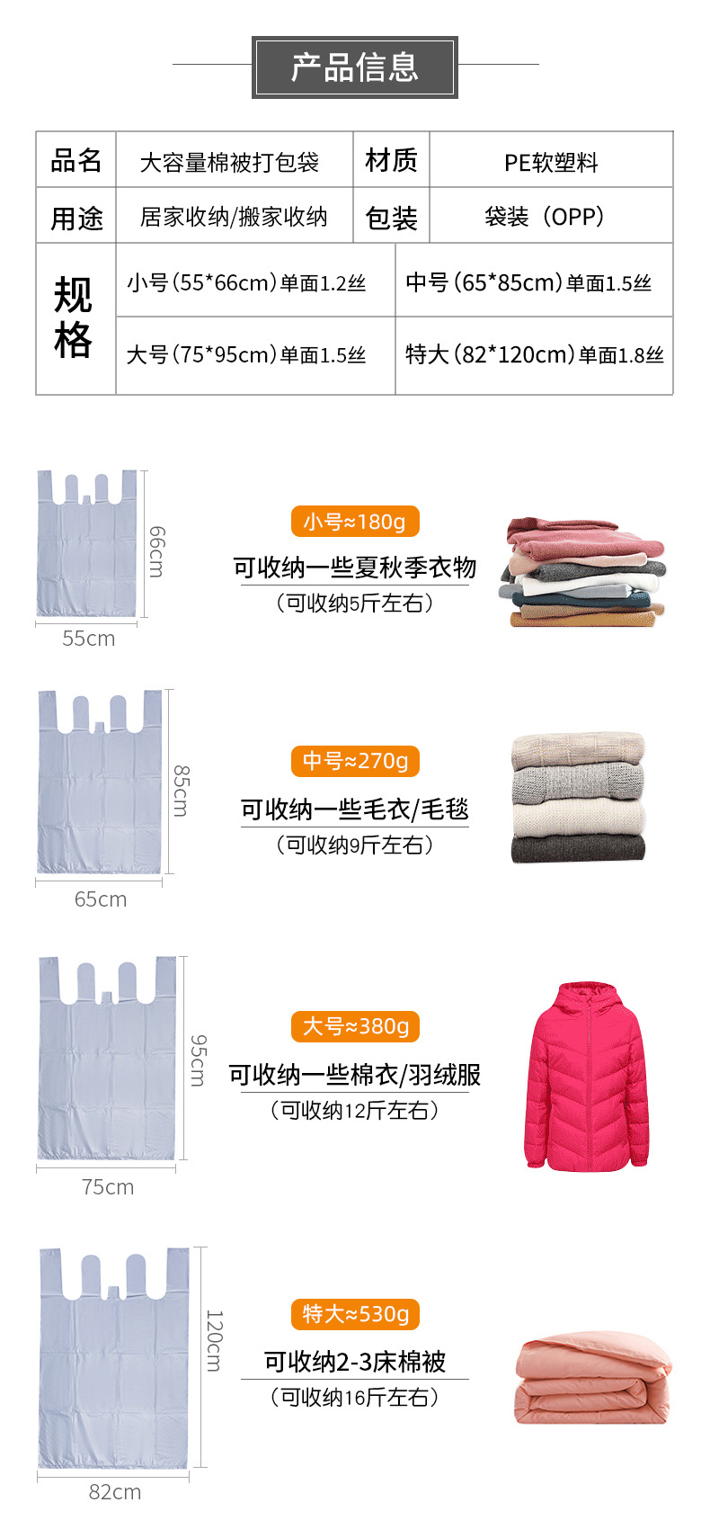 이동 가방 큰 용량 두꺼운 큰 가방 강한 수하물 의류 퀼트 포장 가방 휴대용 방수 비닐 봉투