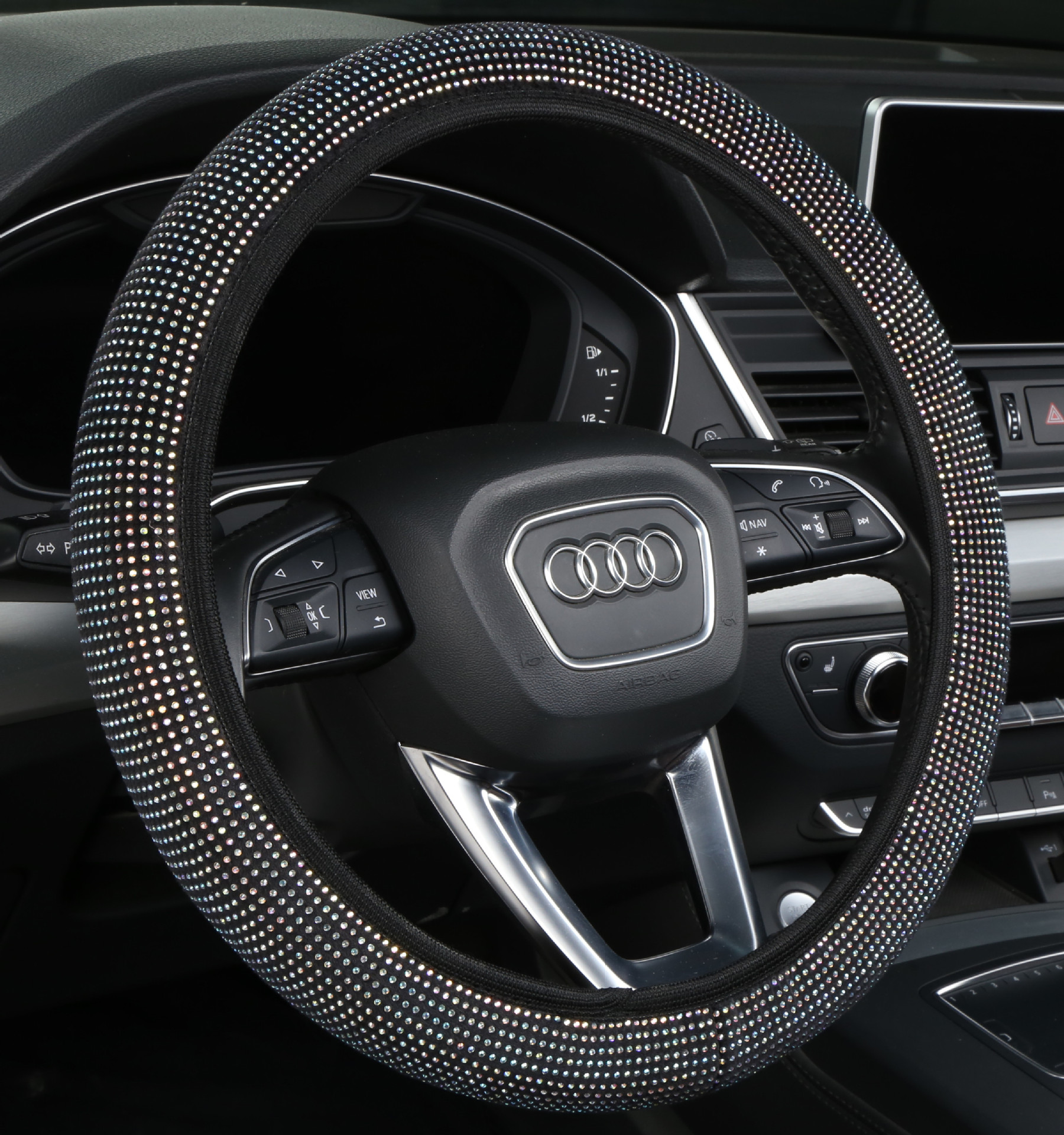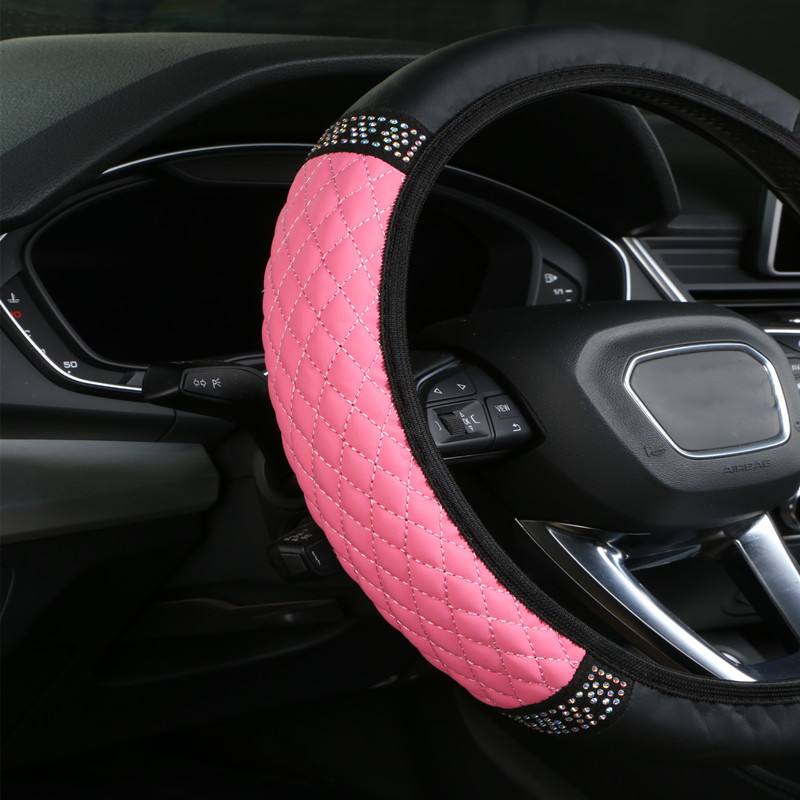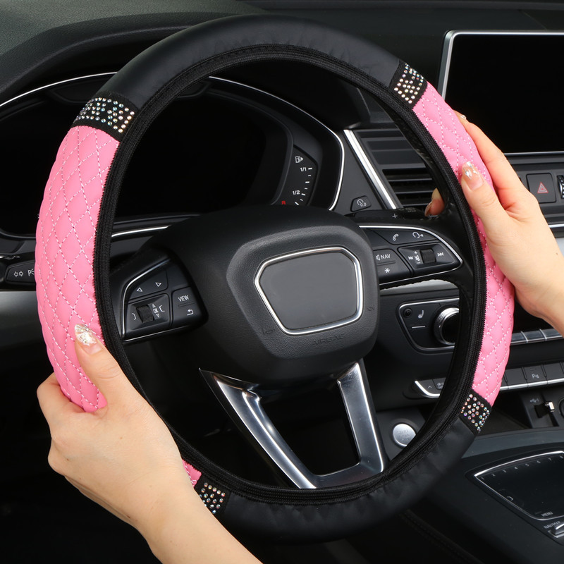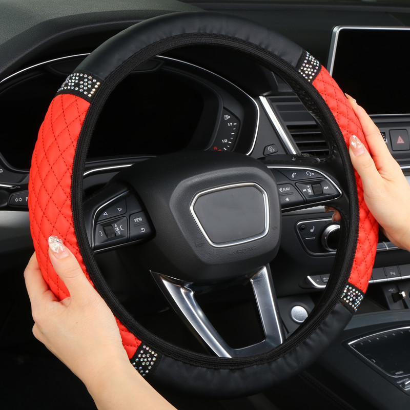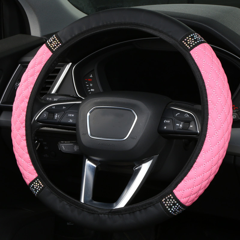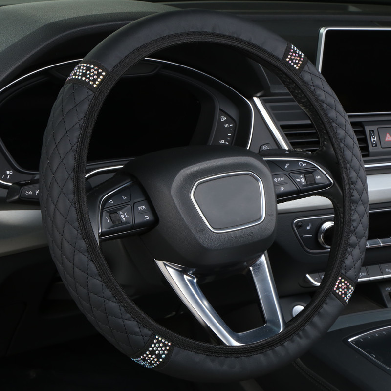 내부 링 가죽없이 국경 도매 자동차 스티어링 휠 커버 자수 컬러 다이아몬드 탄성 스티어링 휠 커버 핸들 커버스토어 가기