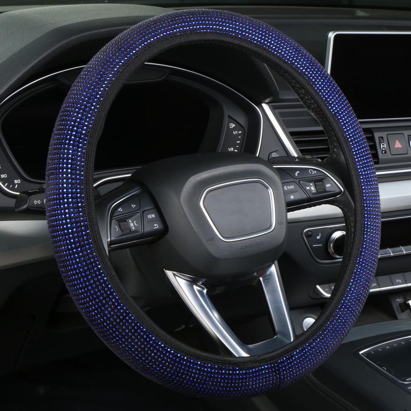 내부 링 가죽없이 국경 도매 자동차 스티어링 휠 커버 자수 컬러 다이아몬드 탄성 스티어링 휠 커버 핸들 커버
