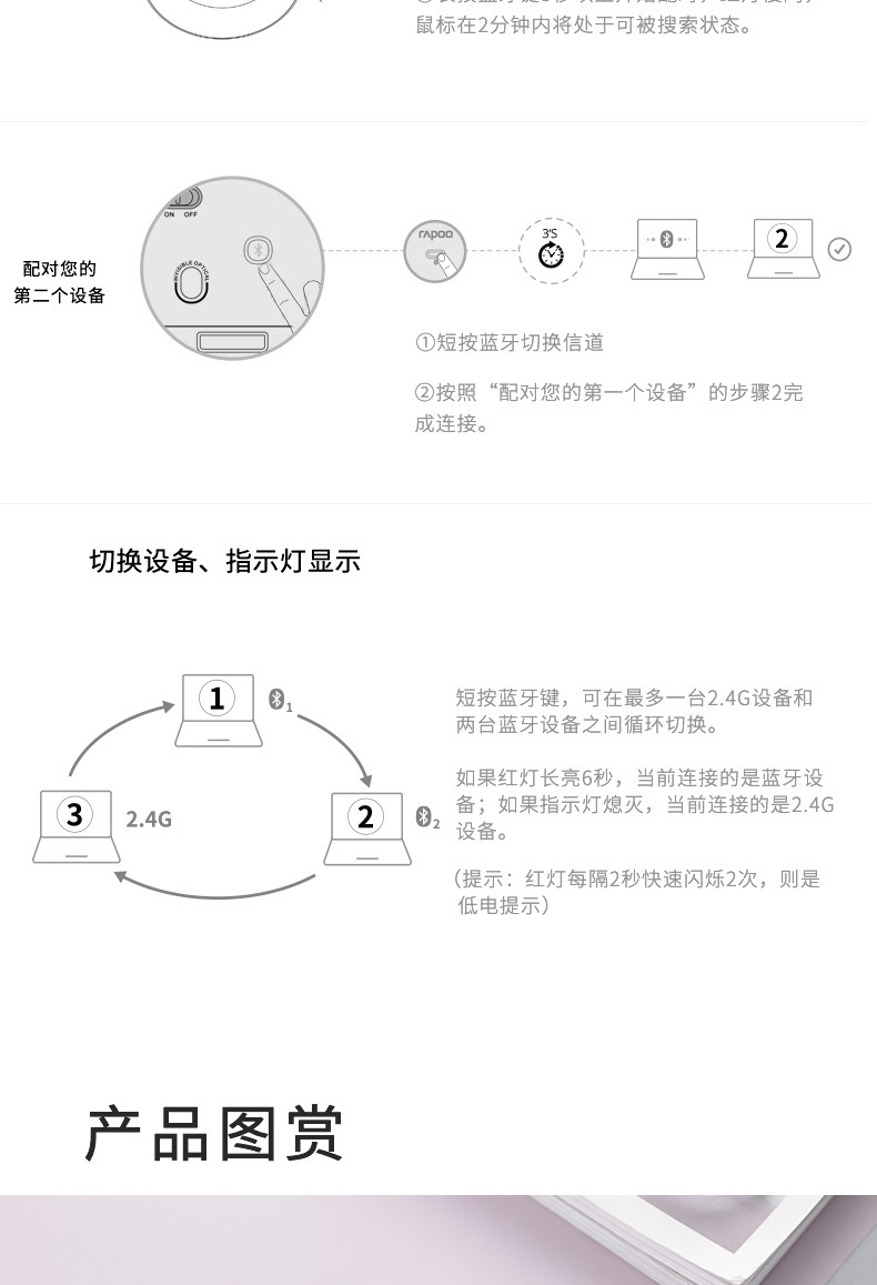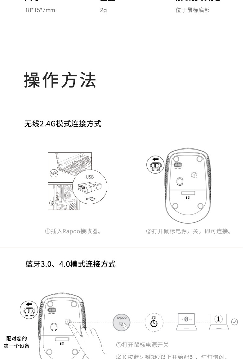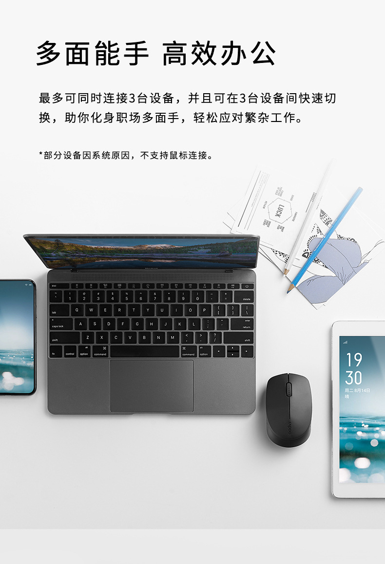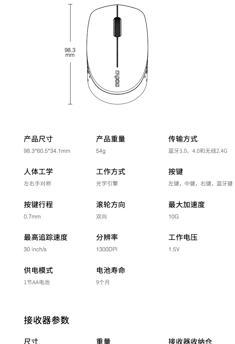 Rapoo Lei Bai M100G 무선 음소거 마우스 2.4G 블루투스 3 모드 Mac 컴퓨터 사무실 홈 USB스토어 가기