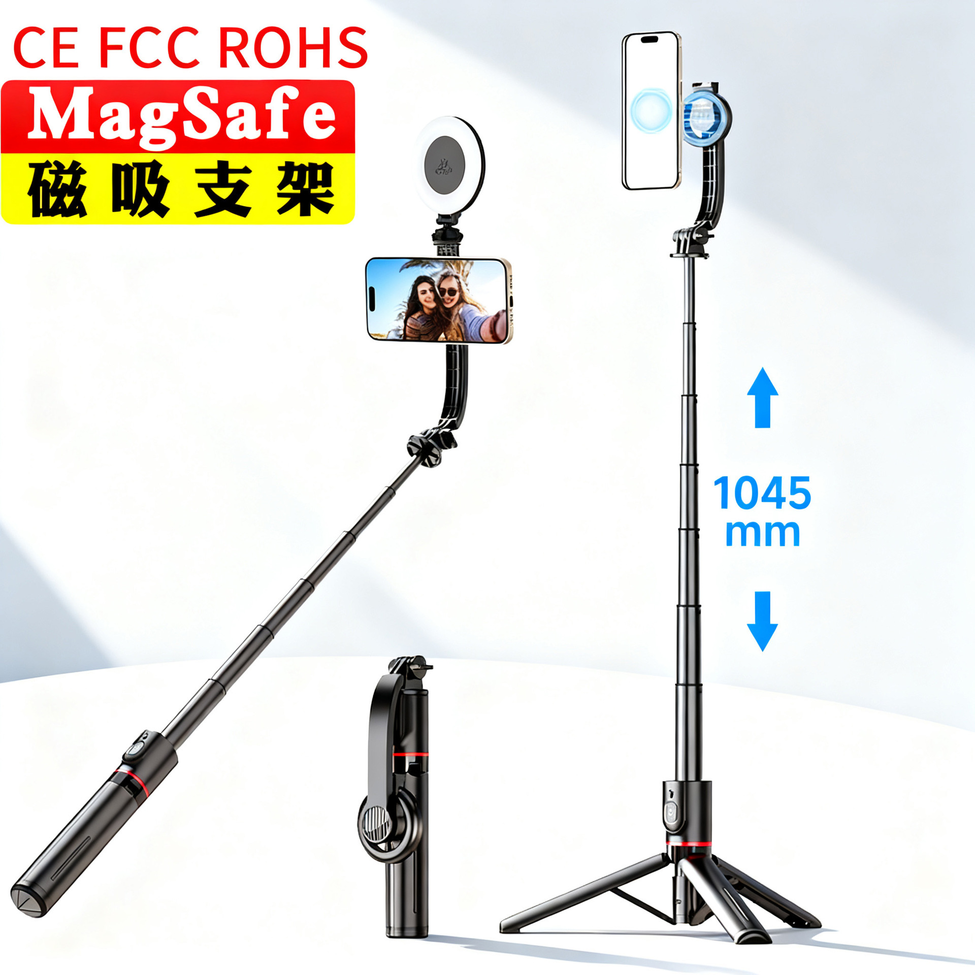 게으른 자기 브래킷 셀프 타이머 스틱 휴대 전화 라이브 방송 브래킷 휴대용 야외 magsafe 안티 쉐이크 휴대 전화 셀프 타이머 스틱스토어 가기