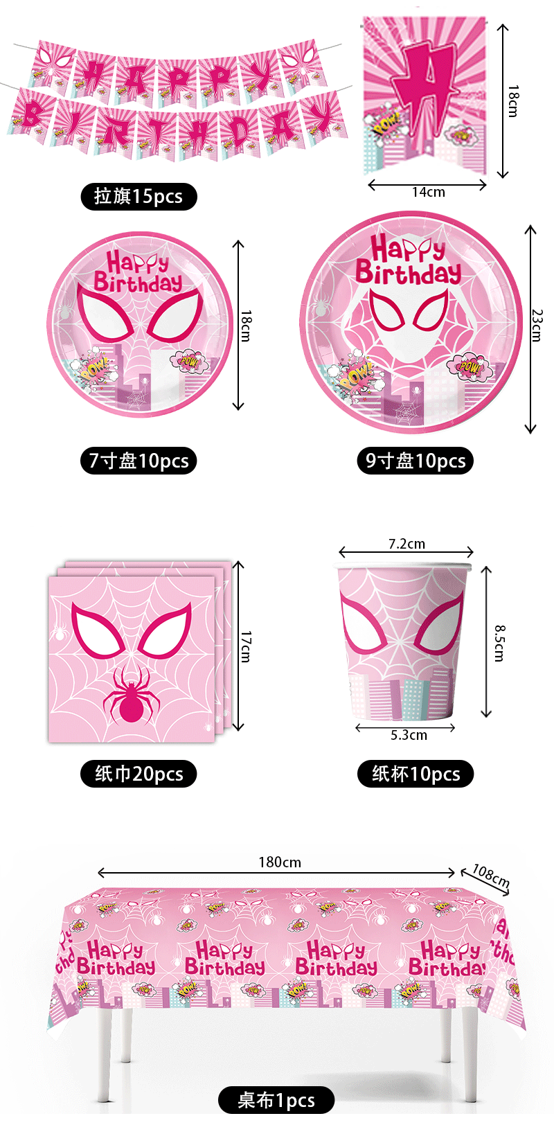 • 15pcs-핑크 스파이더 맨 깃발 당기기