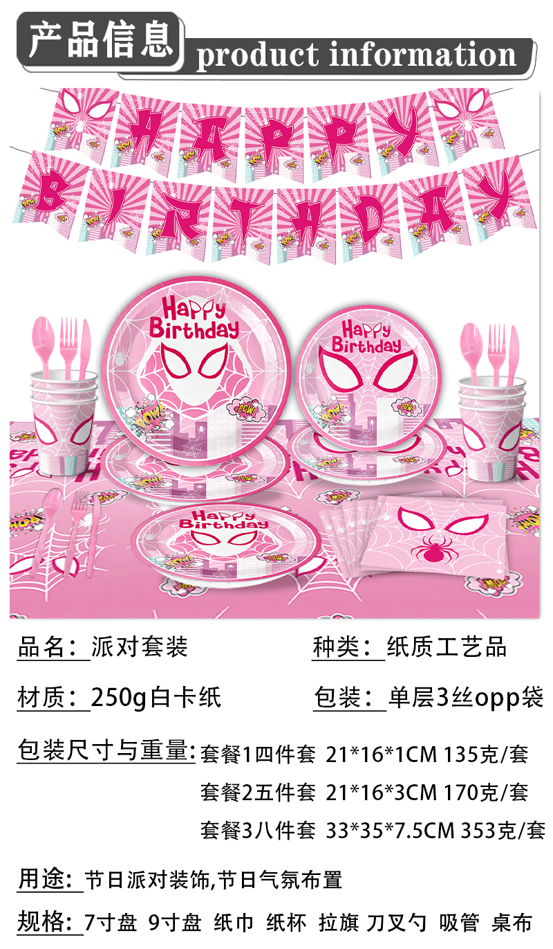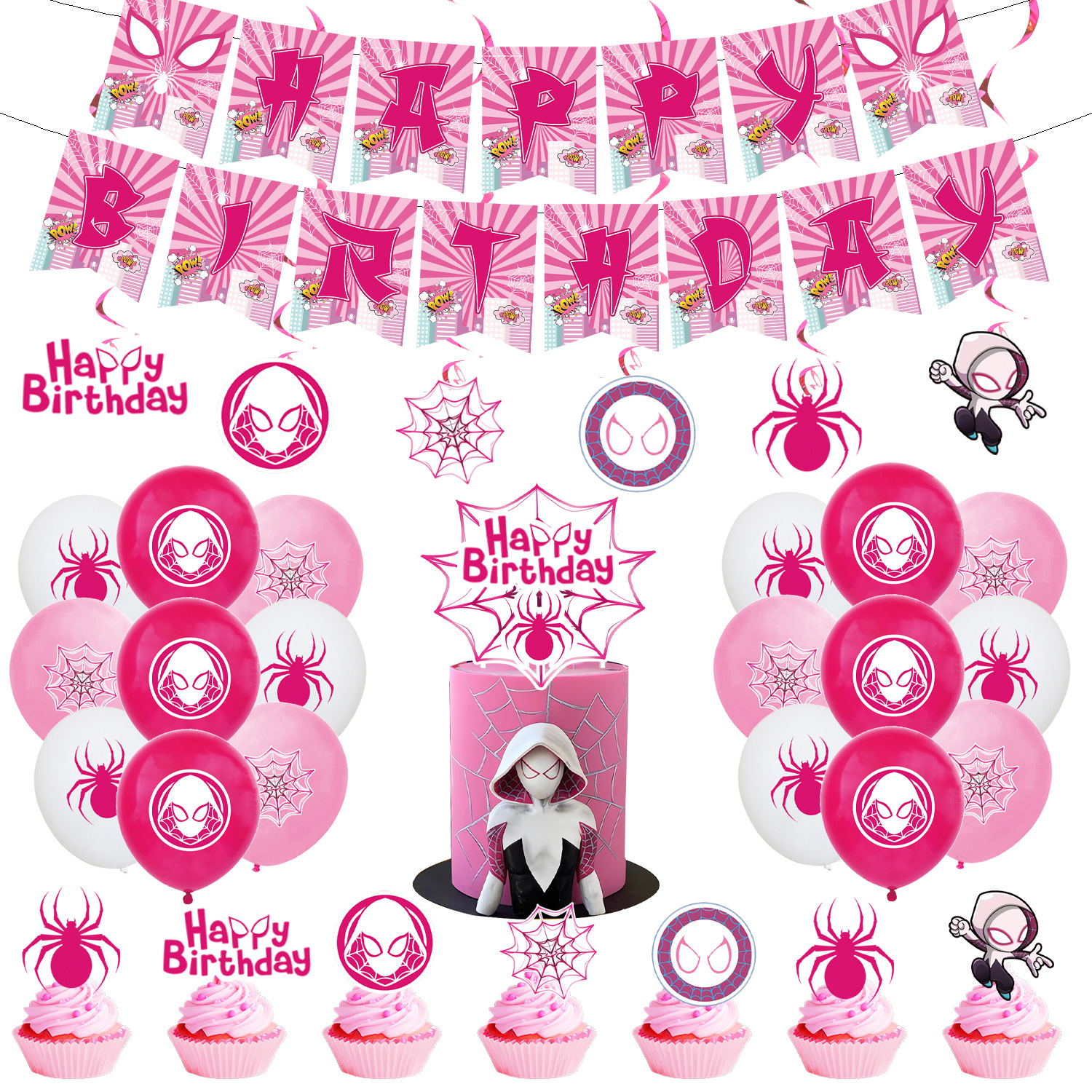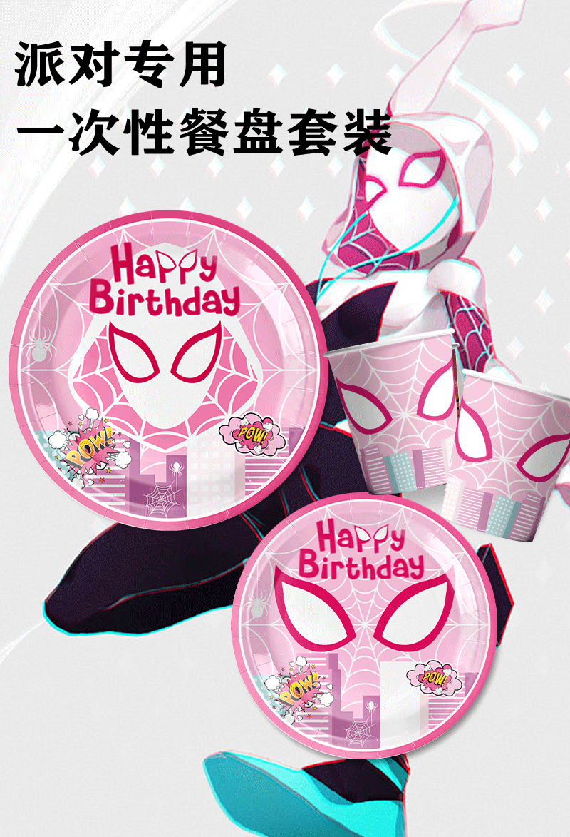 새로운 핑크 여성 스파이더 맨 그웬 테마 풍선 어린이 생일 파티 장식 일회용 식기 장식스토어 가기
