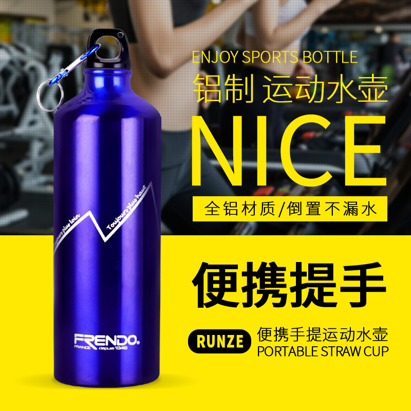 패션 블루 스포츠 물병 야외 알루미늄 물병 휴대용 대용량 플라스틱 등산 냄비 물 컵스토어 가기