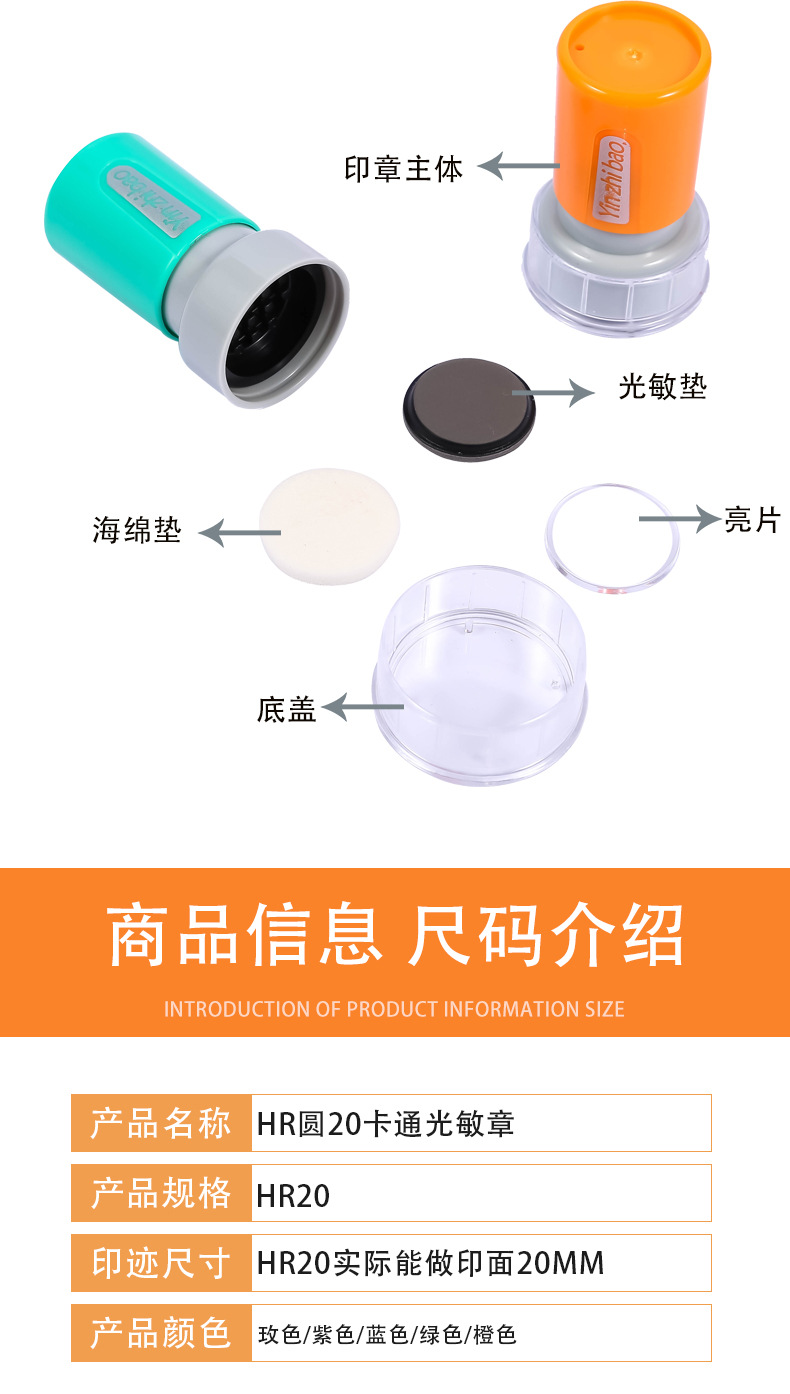 HR 감광성 씰 HR20 만화 라운드 작은 씰 재료 교사 의견 QC 감광성 씰 재료 도매스토어 가기