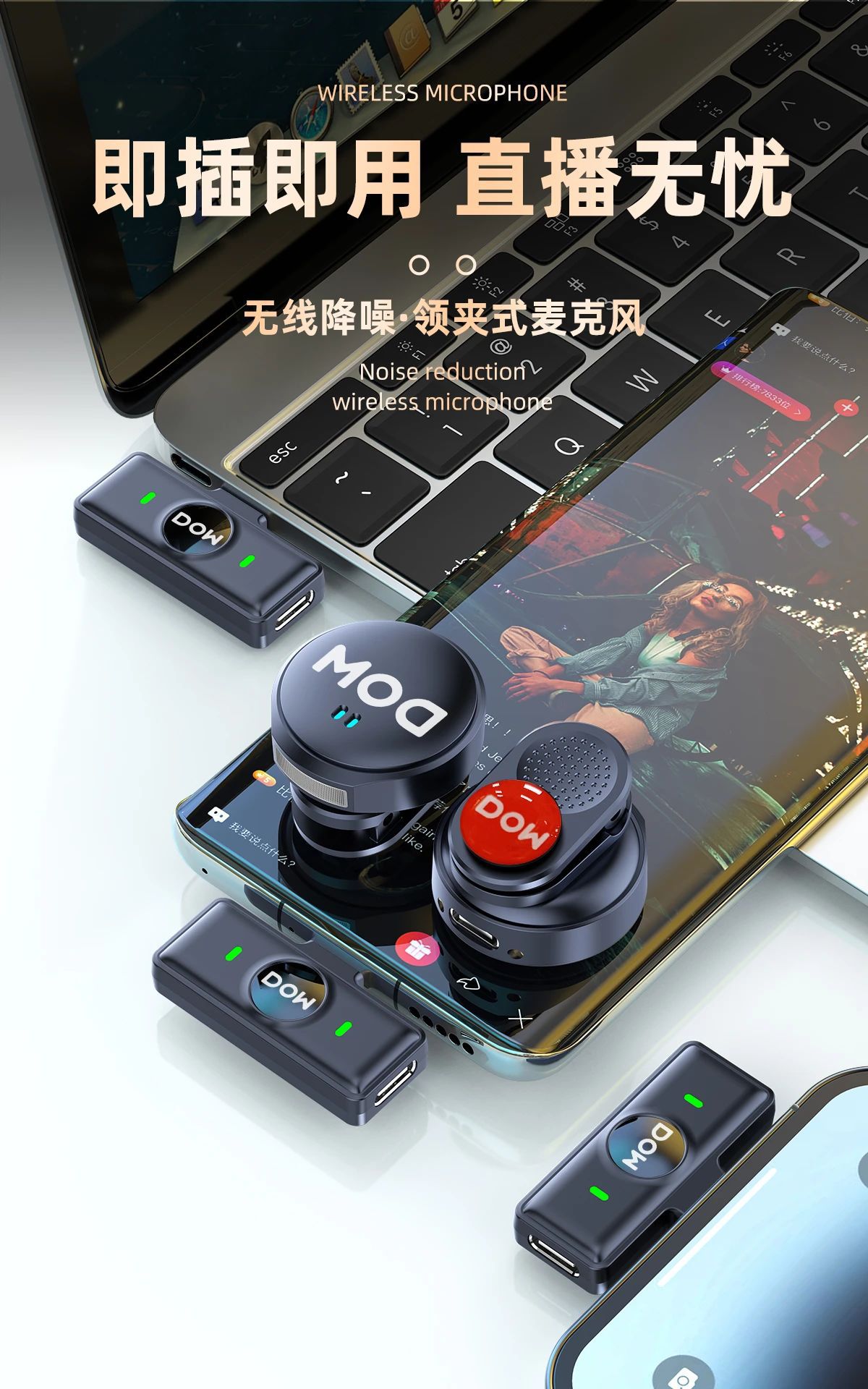 다차원 W35 마그네틱 무선 Laike 미니 휴대용 마이크 인터뷰 녹음 노이즈 감소 리버레이션 라이브 마이크스토어 가기