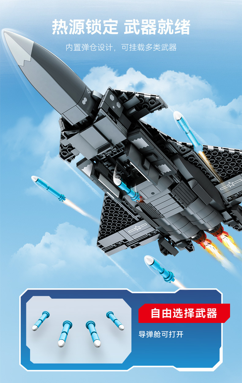 센바오 빌딩 블록 J-20 스텔스 파이터 모델 장식품 소년 군사 조립 퍼즐 빌딩 블록 장난감 202241