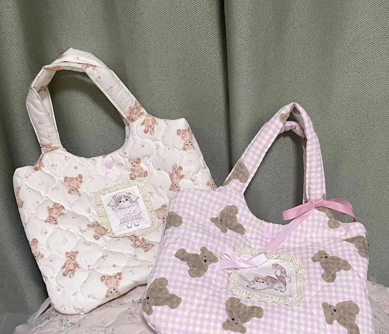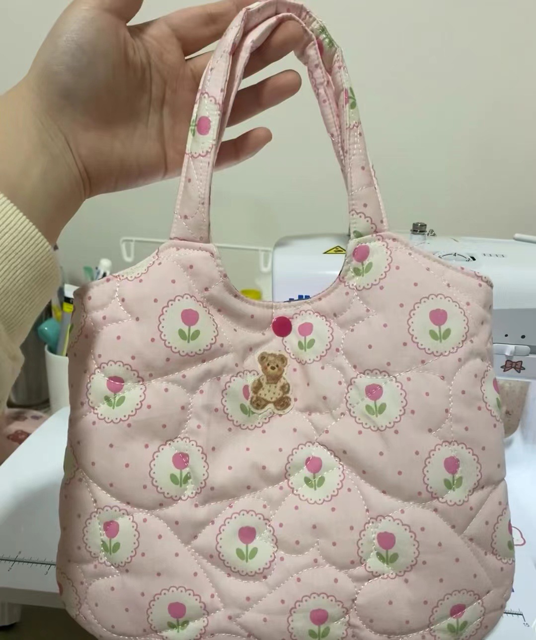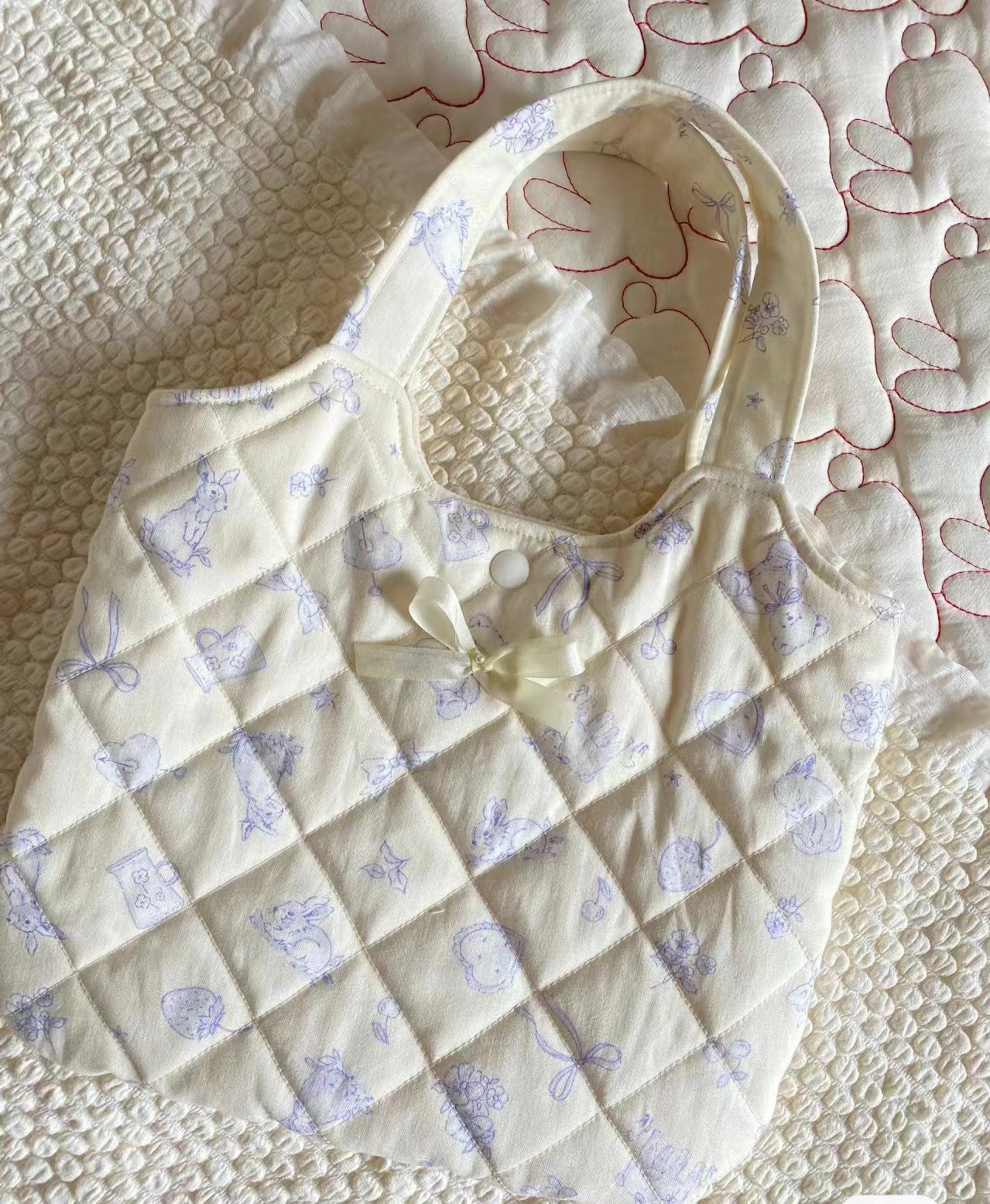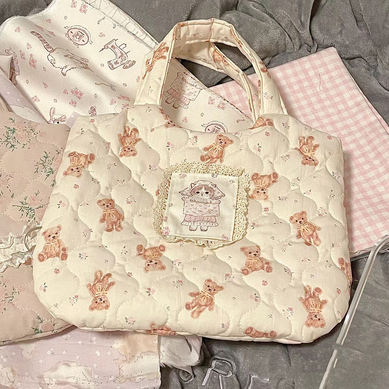 작은 빨간 책 폭발성 수제 가방 퀼트 코튼 크래프트 화장품 가방 귀여운 패턴 토트 가방 사랑 토끼 요소 가방스토어 가기