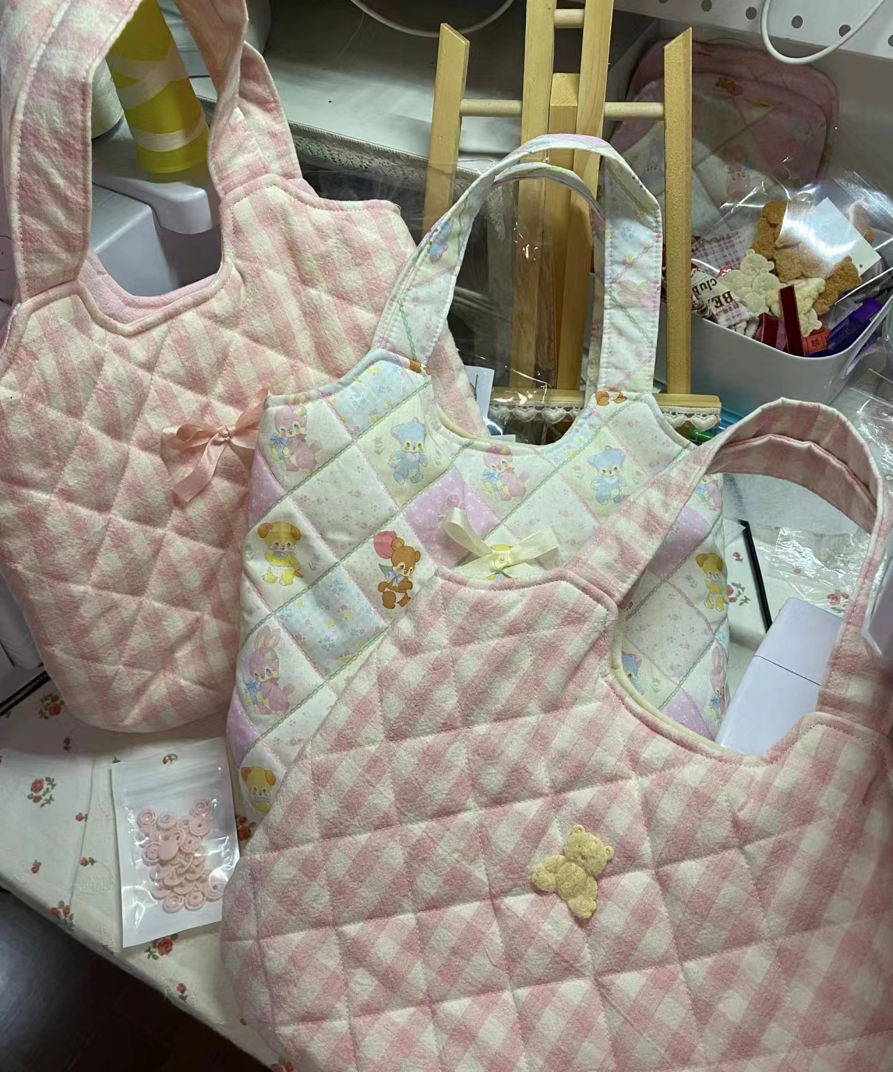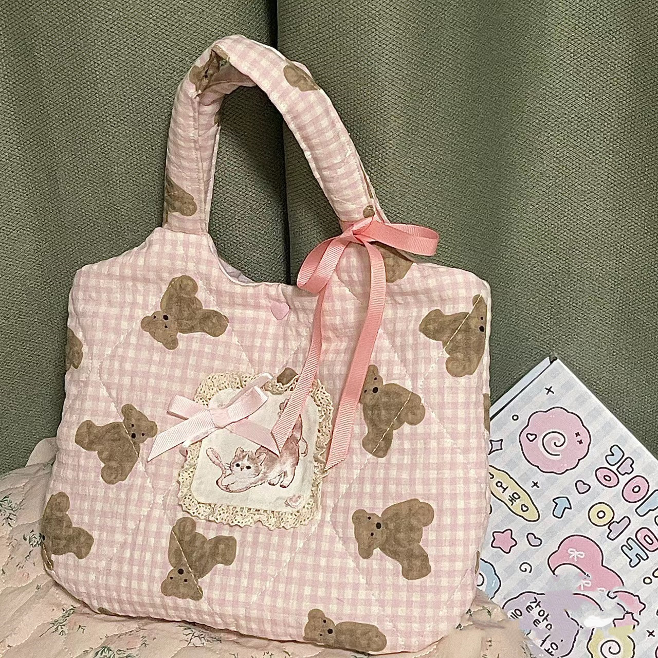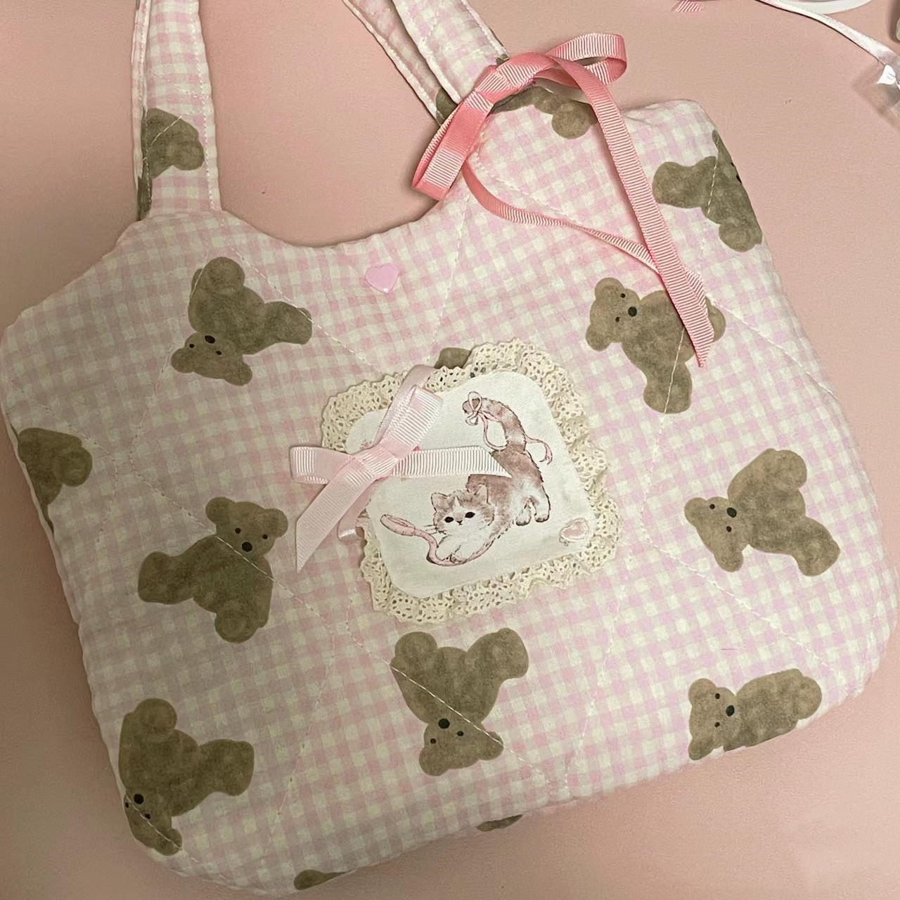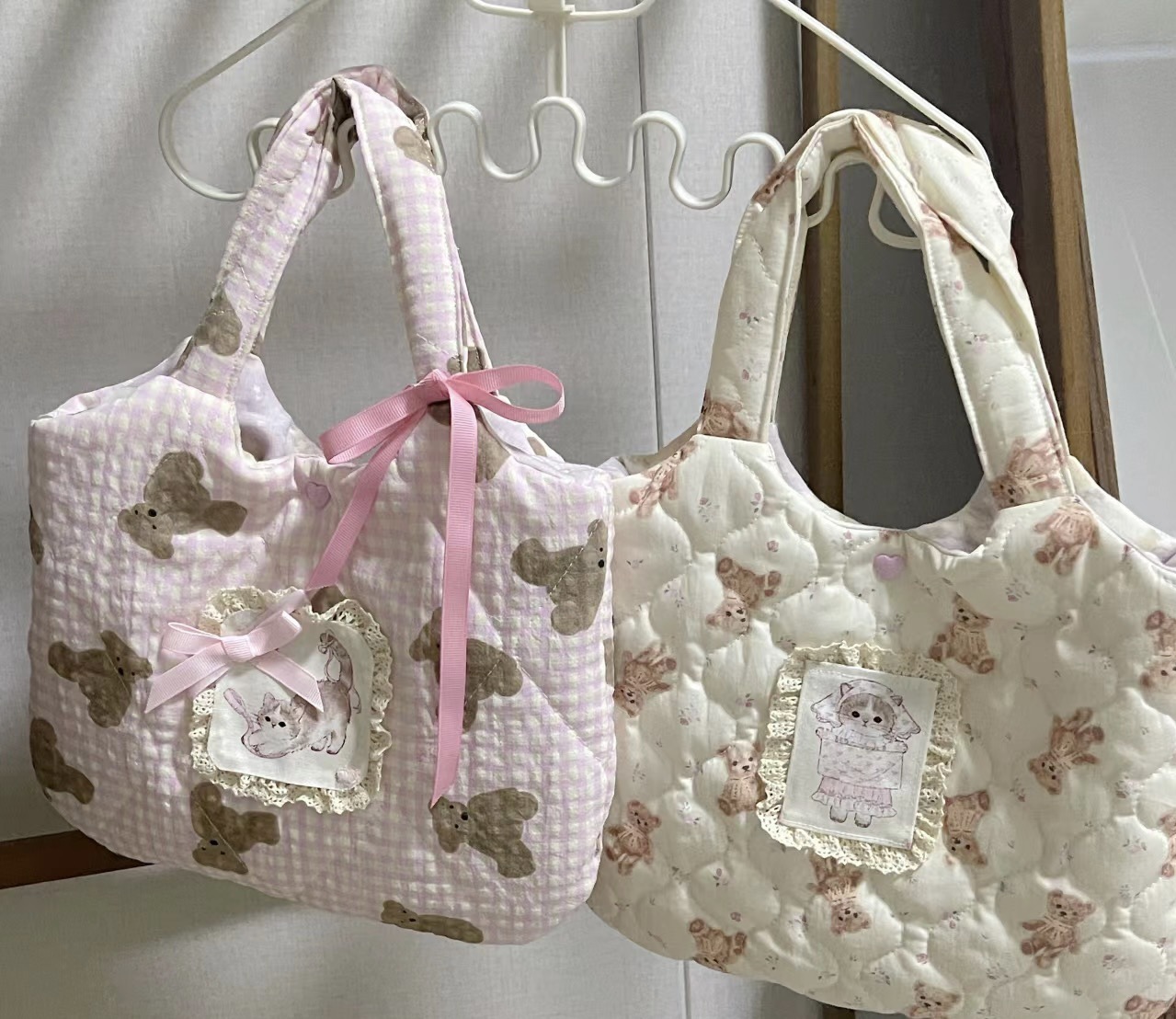 작은 빨간 책 폭발성 수제 가방 퀼트 코튼 크래프트 화장품 가방 귀여운 패턴 토트 가방 사랑 토끼 요소 가방스토어 가기