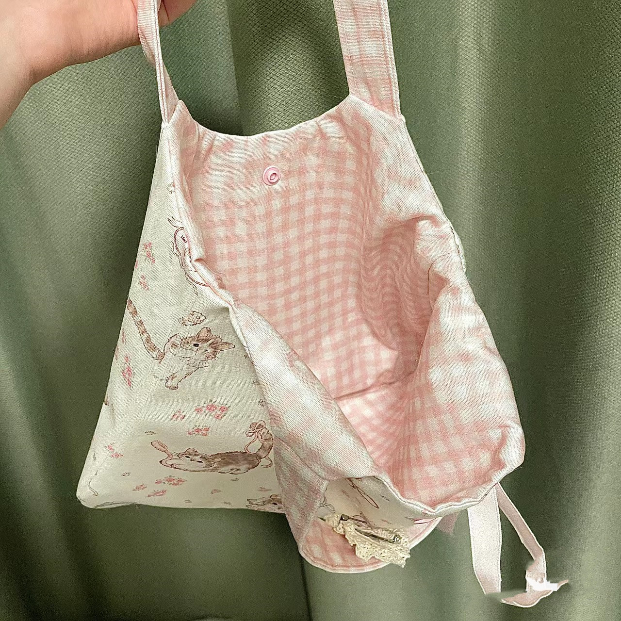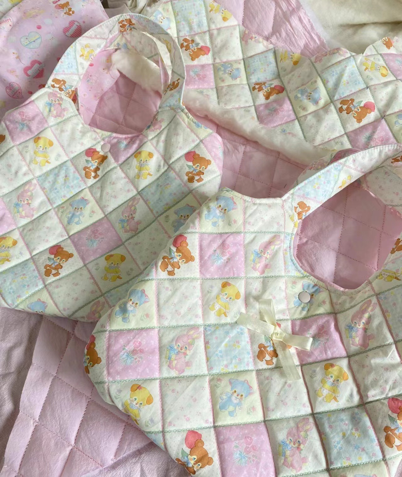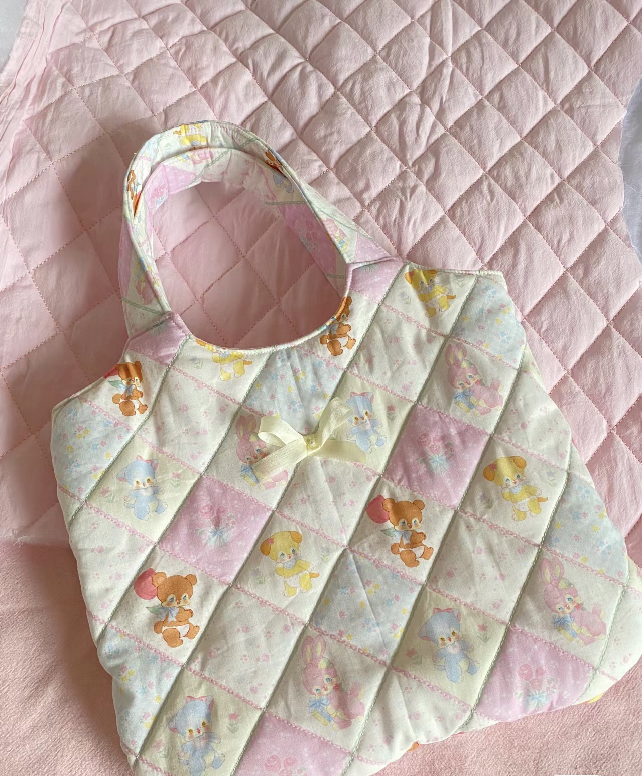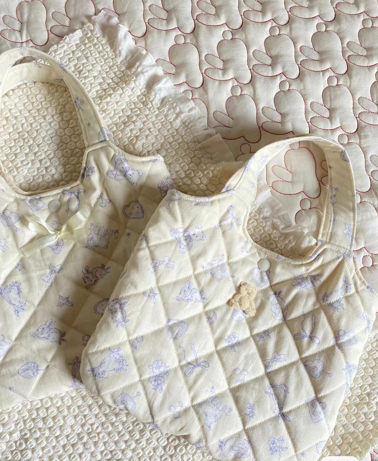 작은 빨간 책 폭발성 수제 가방 퀼트 코튼 크래프트 화장품 가방 귀여운 패턴 토트 가방 사랑 토끼 요소 가방스토어 가기