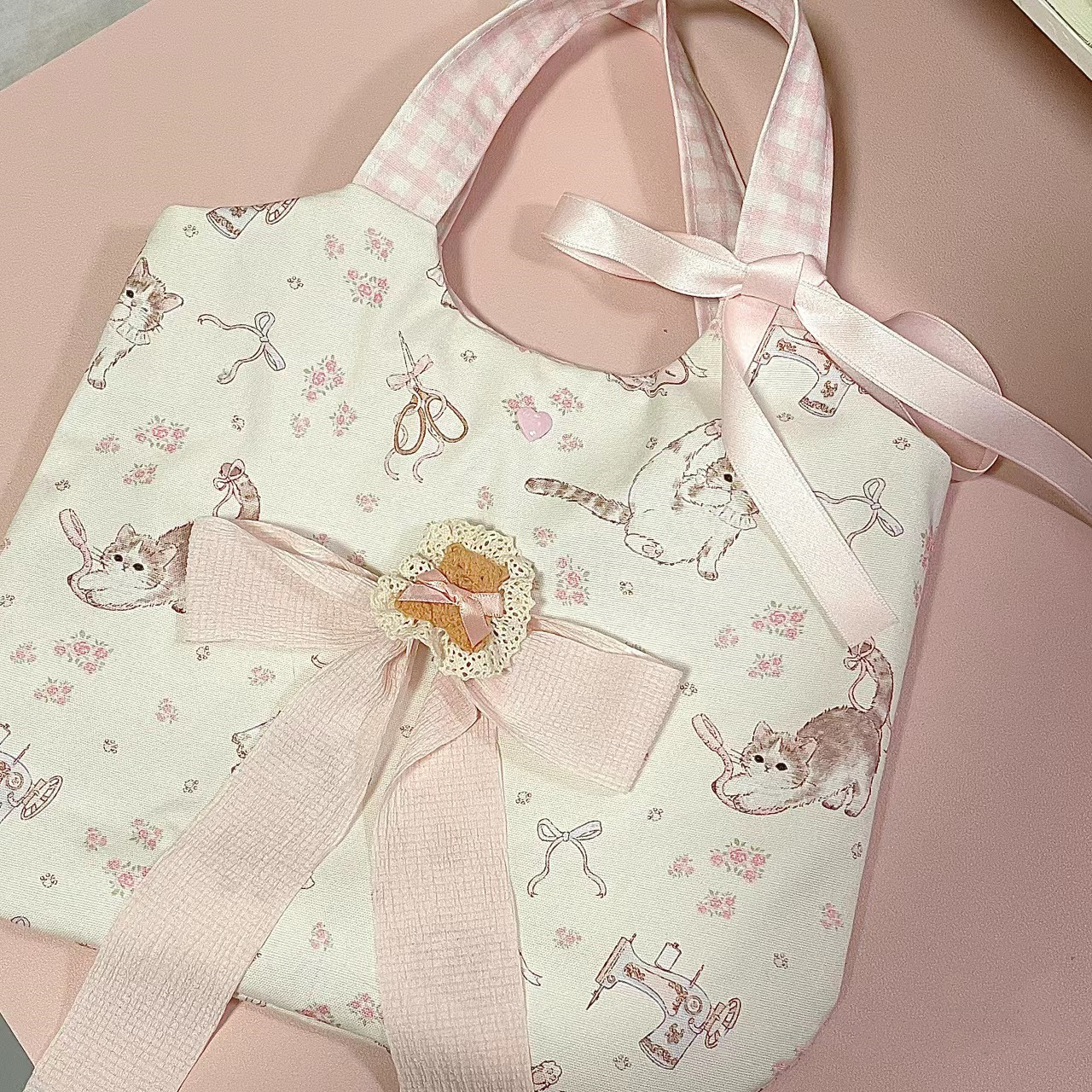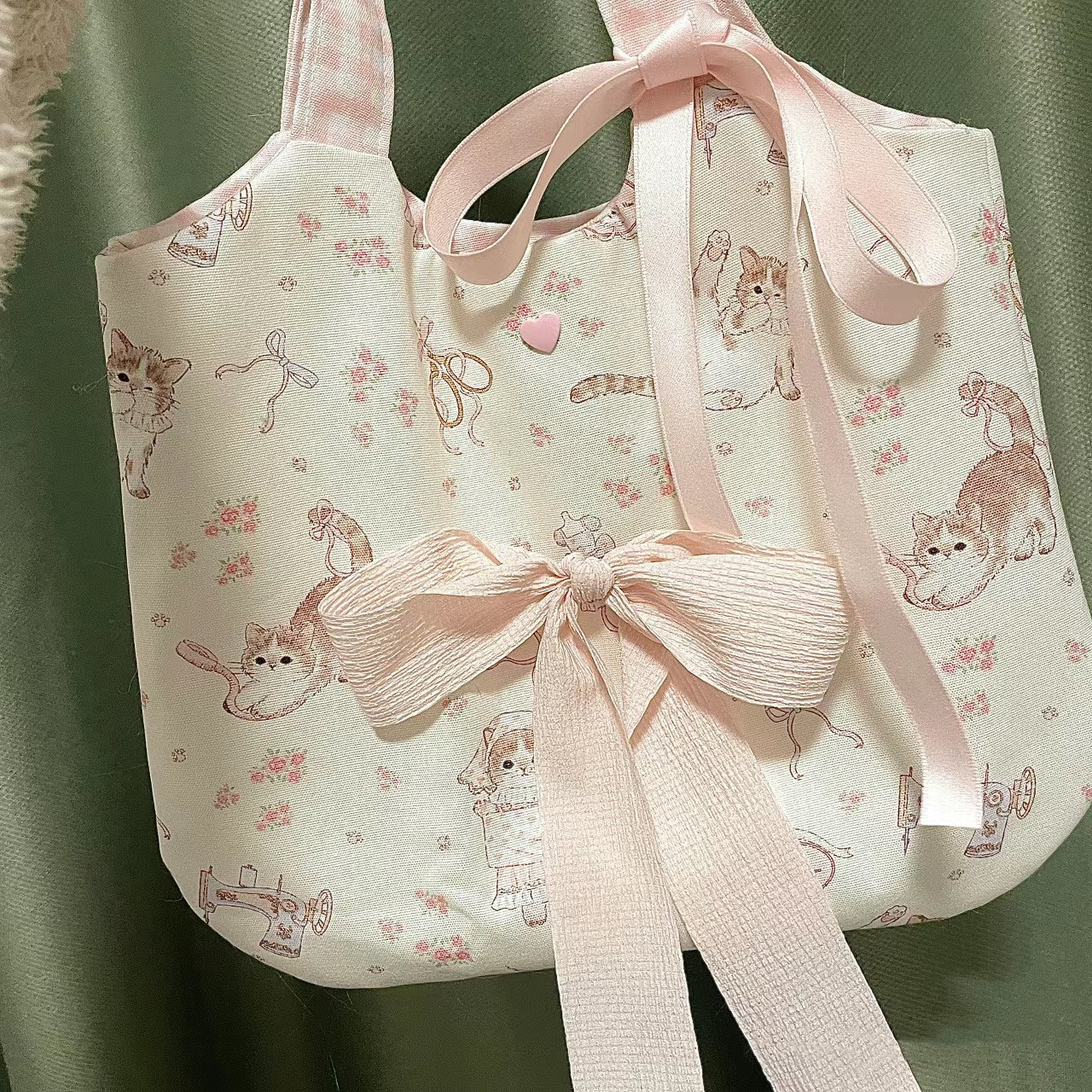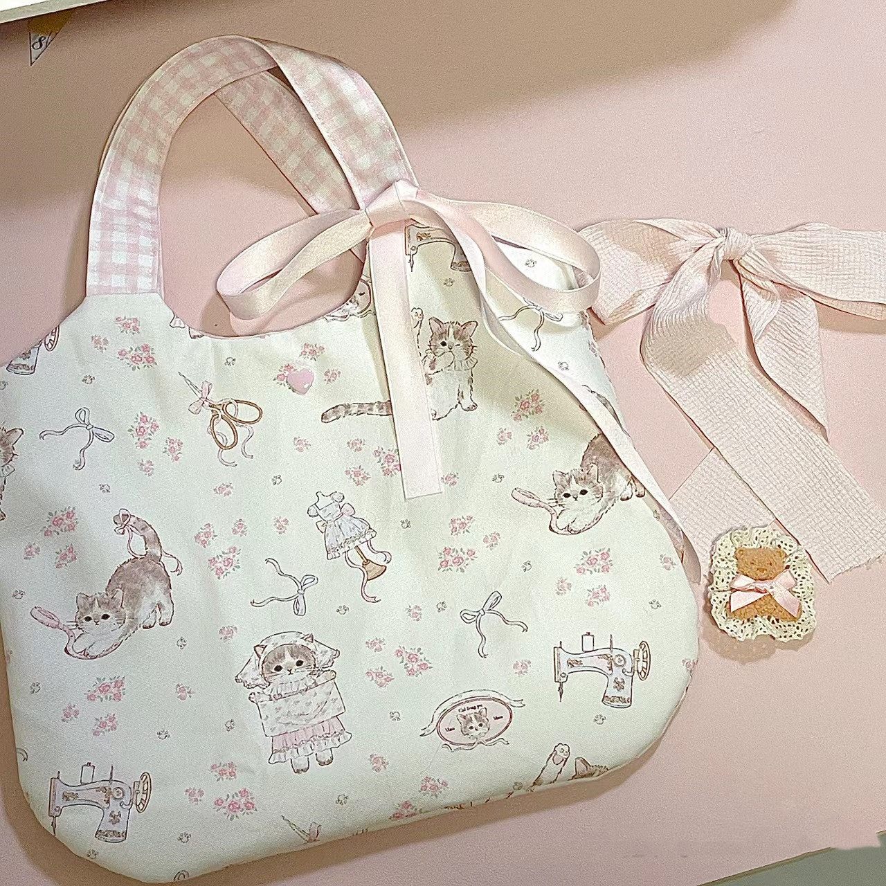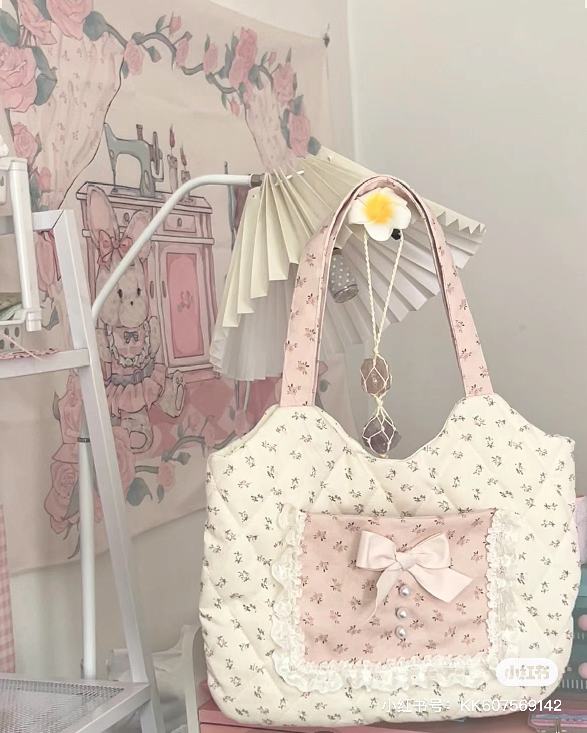 작은 빨간 책 폭발성 수제 가방 퀼트 코튼 크래프트 화장품 가방 귀여운 패턴 토트 가방 사랑 토끼 요소 가방스토어 가기