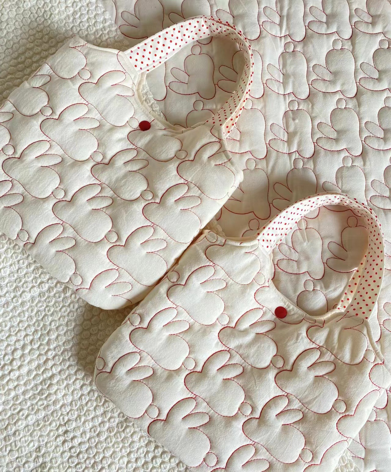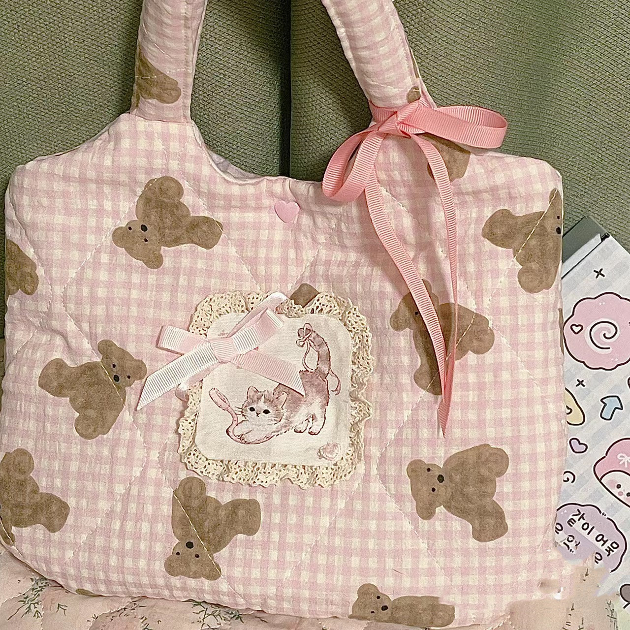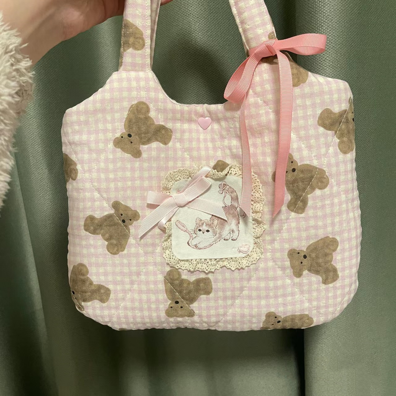 작은 빨간 책 폭발성 수제 가방 퀼트 코튼 크래프트 화장품 가방 귀여운 패턴 토트 가방 사랑 토끼 요소 가방