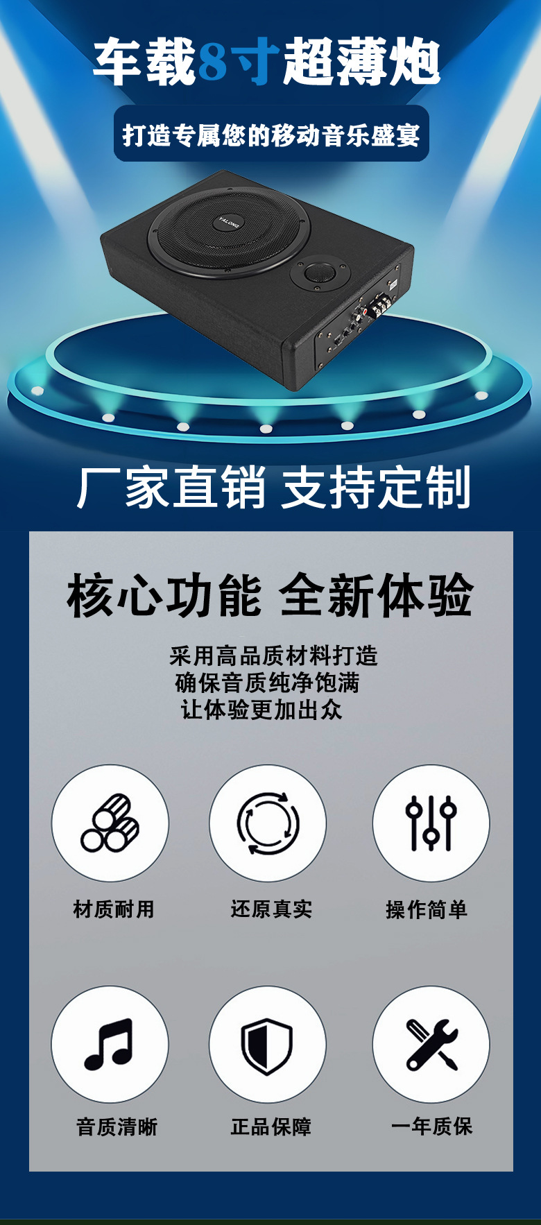 트레블 10 인치 자동차 초박형 총 크기 사용자 정의 12V 는 자동차 의자 활성 8 인치 자동차 서브 우퍼 아래에 놓을 수 있습니다.스토어 가기