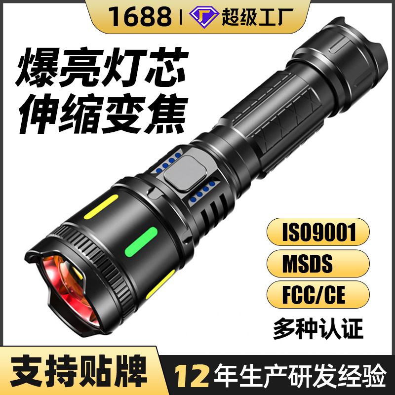 국경 간 전술용 장시간 지속 손전등 야외 휴대용 비상 조명 다기능 줌 장거리 강광 손전등