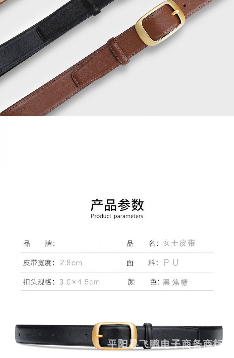 검은 작은 광장 버클 여성용 벨트 간단한 모든 경기 청바지 장식 벨트 여성용 일본 버클 핀 버클 벨트스토어 가기