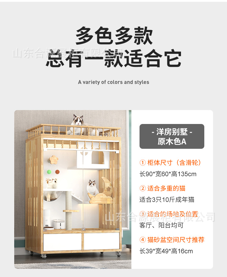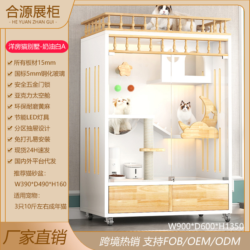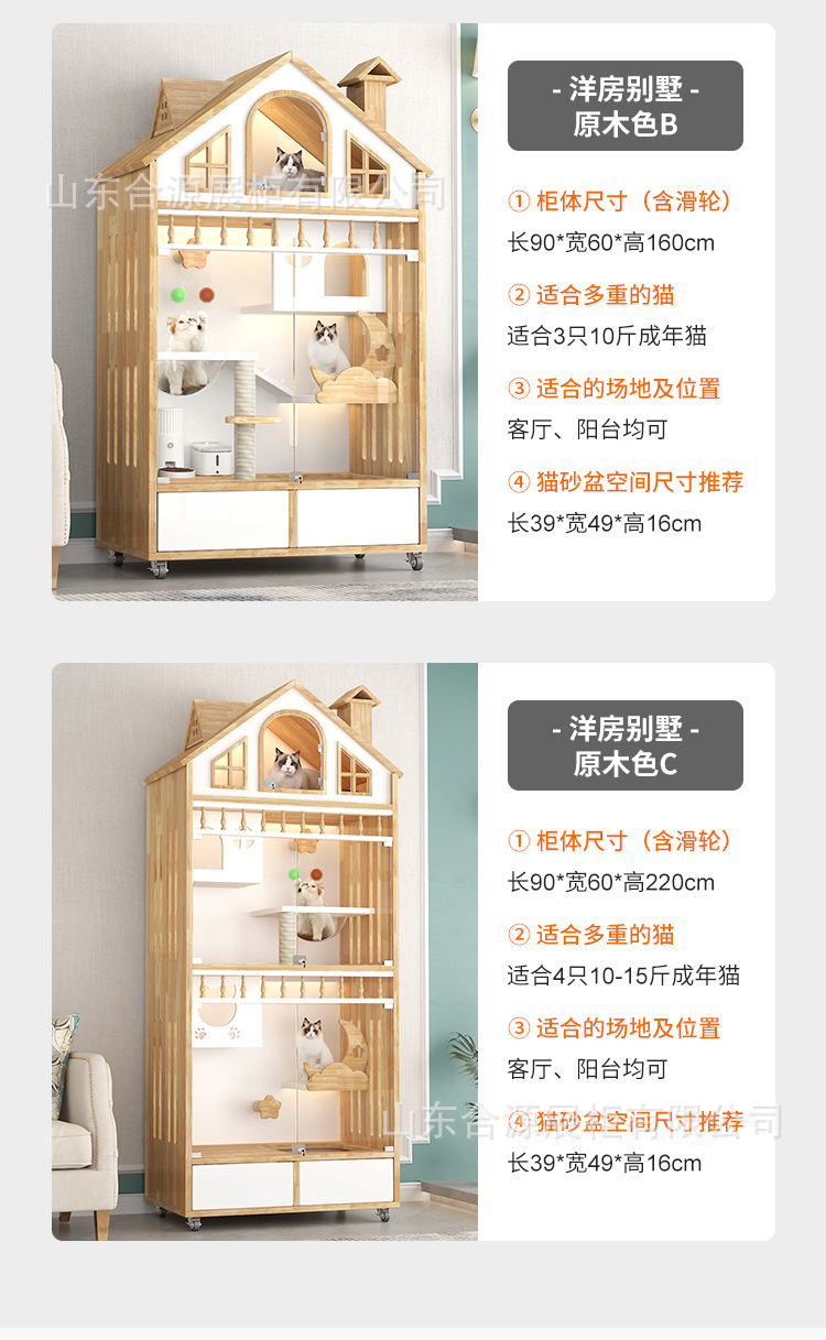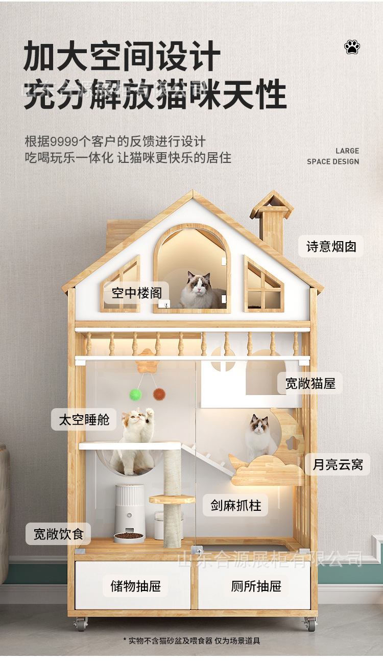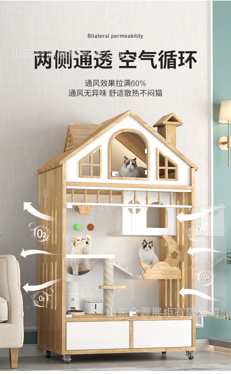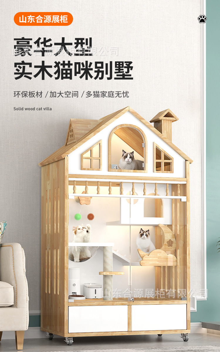슈퍼 대형 럭셔리 고양이 빌라 단단한 나무 방수 고양이 케이지 수직 실내 통합 고양이 둥지 더블 레이어 고양이 캐비닛